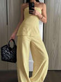 INAWLY 2pcs/Set Women's Summer Solid Color Bandeau Top And Pants Set