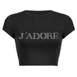 J'ADORE Letters Rhinestone Summer Crop Tops Black Y2k Streetwear Sexy Short Sleeve Tight Tshirts For Women Slim 2000s Clothes