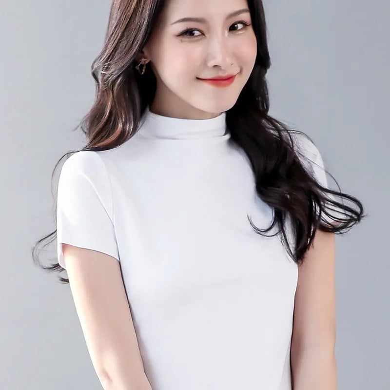 Women Sweetshirts Turtleneck shirts for womens Black White woman clothes Short sleeve Cotton Tees for girls Basic Tops