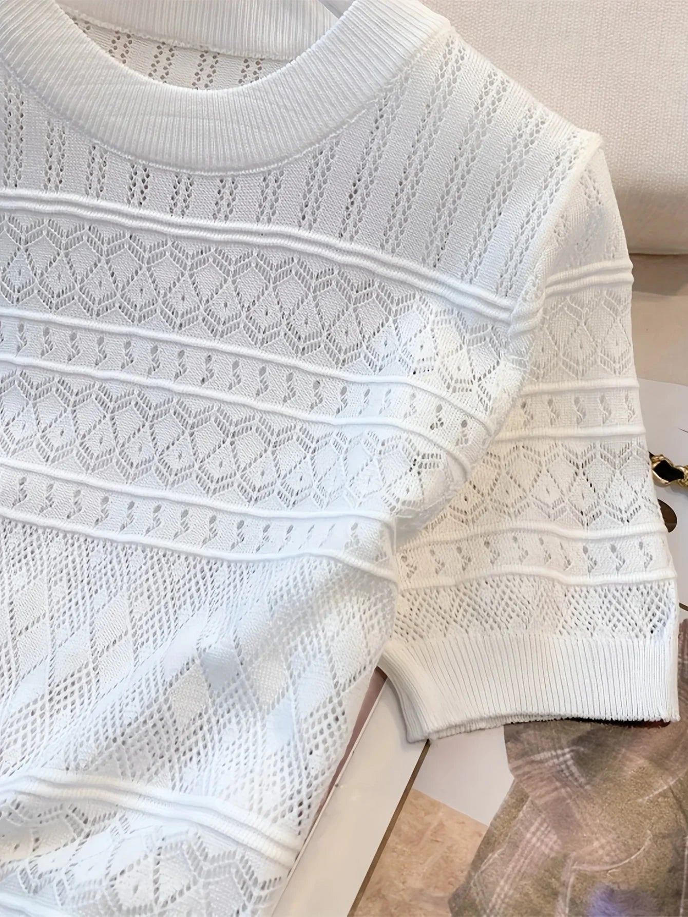 Women's T-Shirts Summer Thin Hollow Out Crew Neck Pullover Sweater Versatile Short Sleeve Knitted Top Women's Clothing