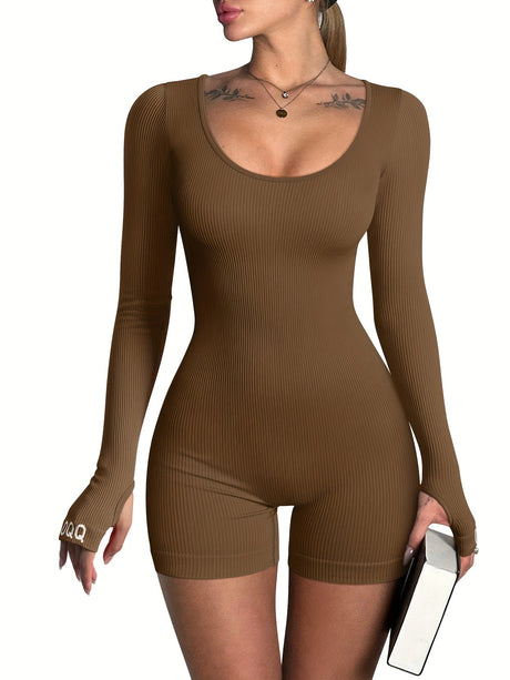 Jumpsuits for Women Seamless Scoop Neck Tummy Control One Piece Yoga Workout Romper