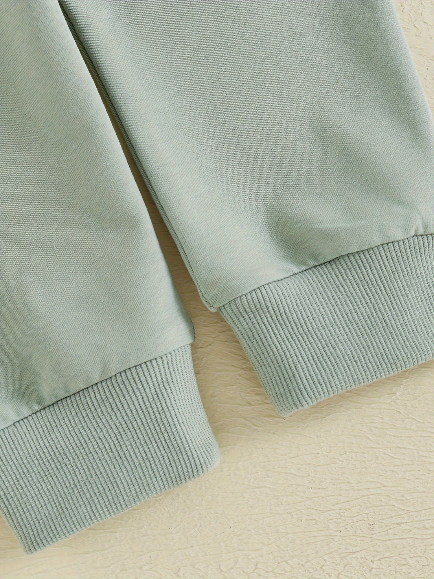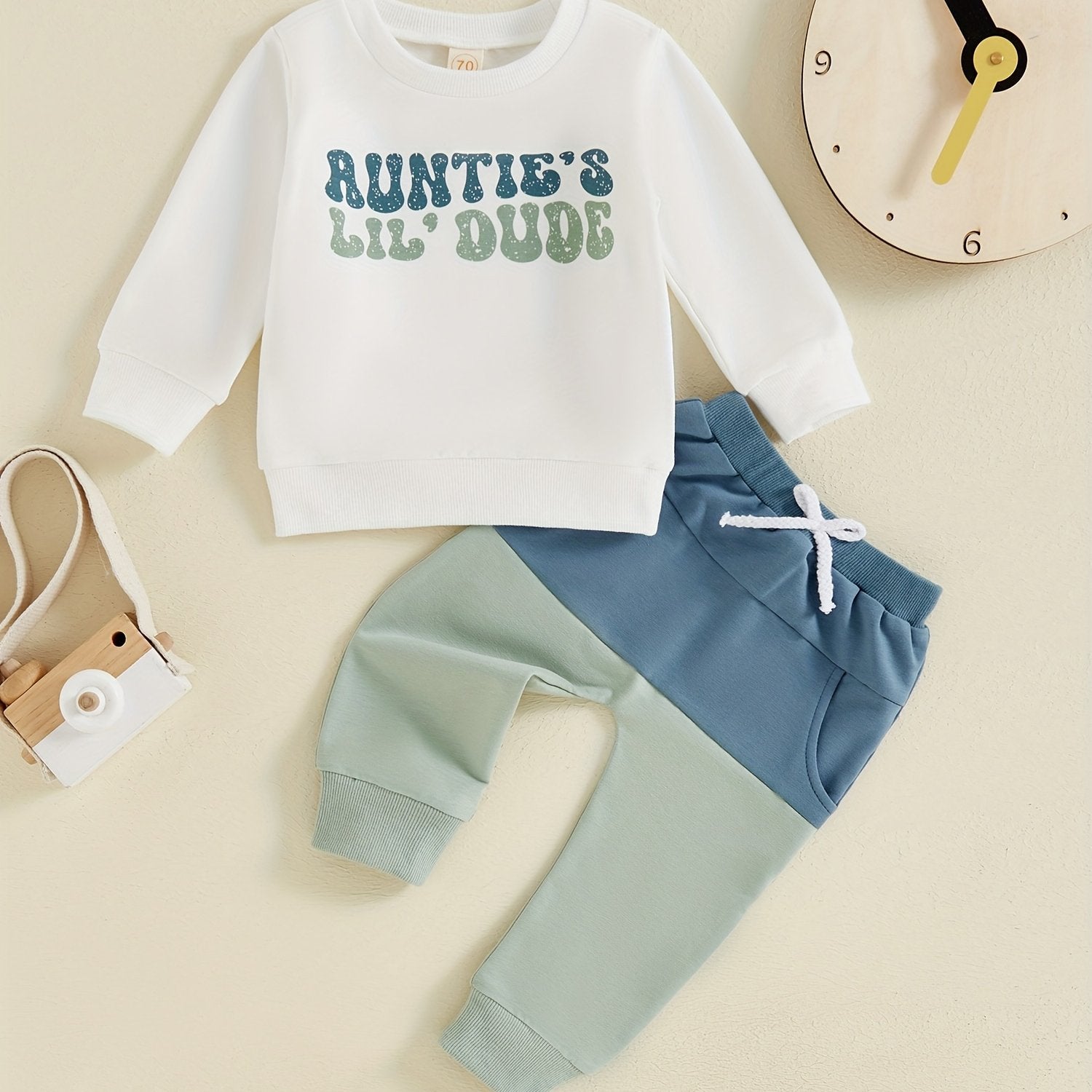 1 Set Toddler Boys Cotton Blend Casual Outfit - Long Sleeve Round Neck Top with Alphabet Print & Contrast Color Pants with Pockets, Regular Fit Knit Fabric for Fall/Winter, for Outdoor
