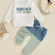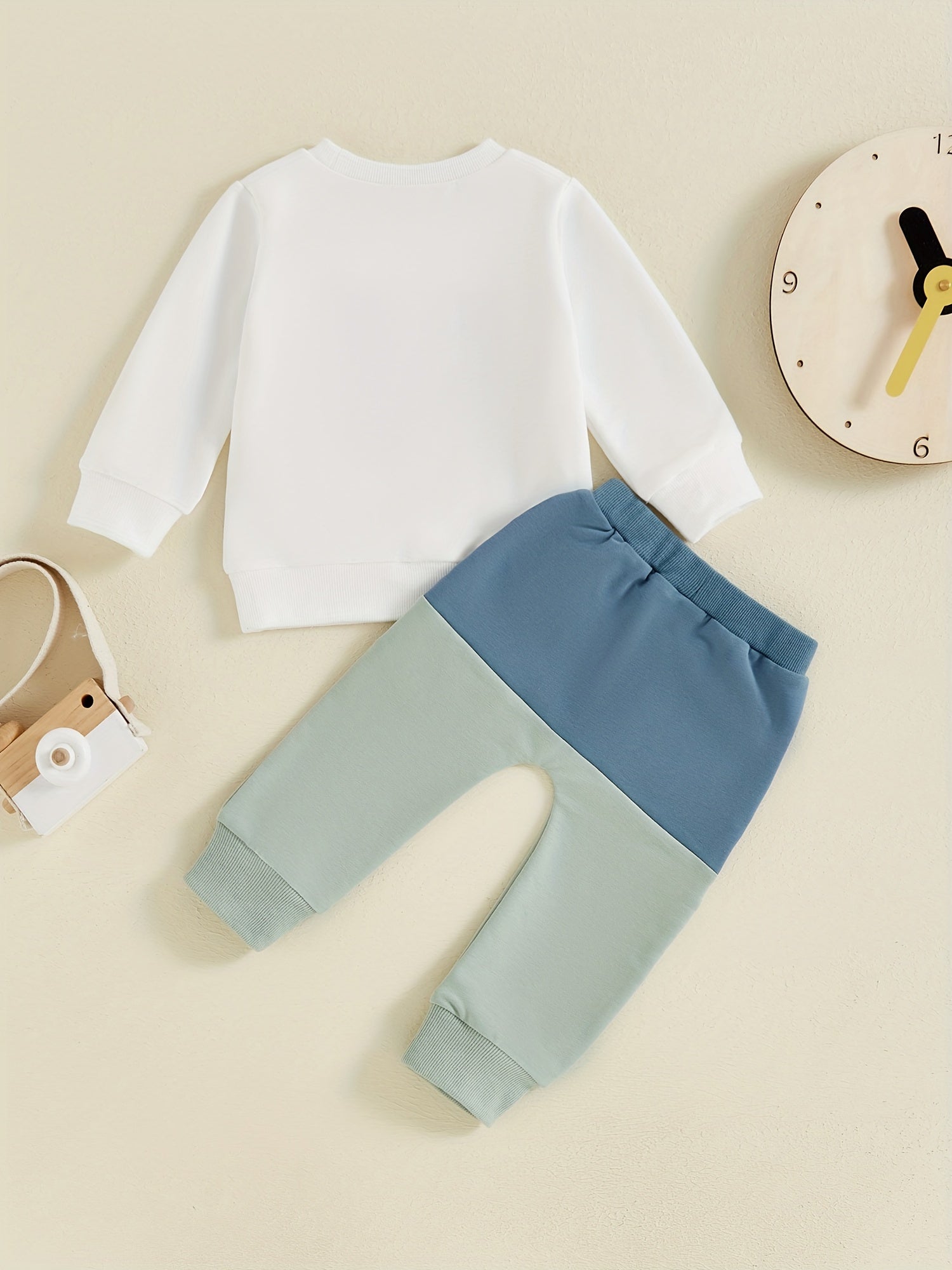 1 Set Toddler Boys Cotton Blend Casual Outfit - Long Sleeve Round Neck Top with Alphabet Print & Contrast Color Pants with Pockets, Regular Fit Knit Fabric for Fall/Winter, for Outdoor - White / 0-3M is backordered and will ship as soon as it is back in stock.