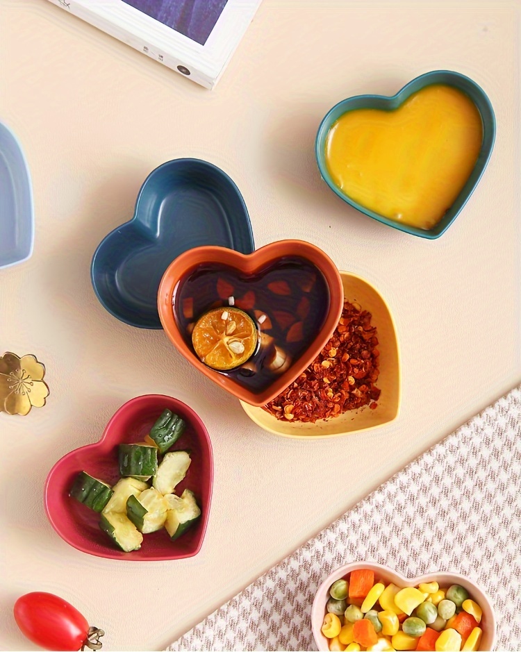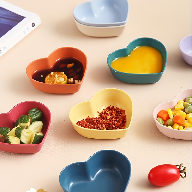 10pcs, Heart Shaped Sauce Dipping Bowls, Wheat Straw Dip Bowls, Small Plastic Appetizer Plates, Dinnerware, Home Kitchen Accessories