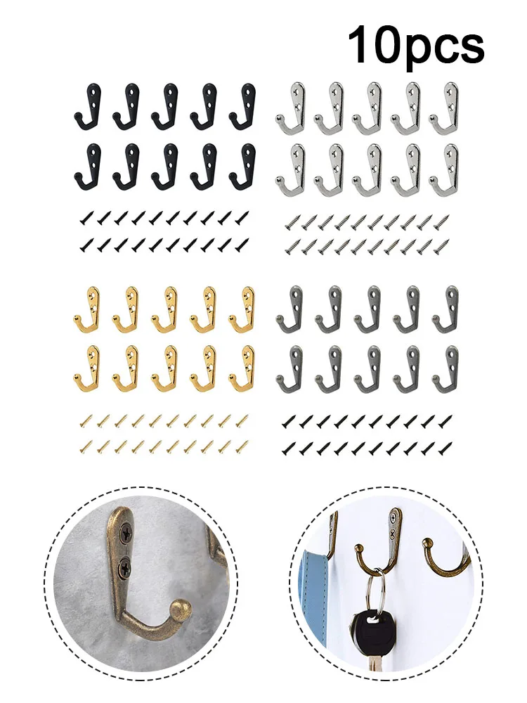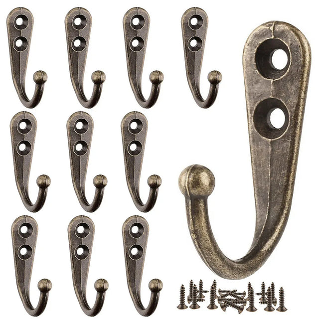 10PCS Retro Wall Hooks Hangers Door Wall Mounted Coat Hooks With Screws Suction Heavy Load Rack For Kitchen Bathroom Accessories