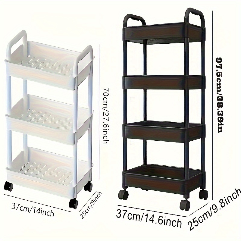 1pc Compact Storage Cart - Versatile Floor Storage for Snacks, Books, Bathroom Essentials, and Kitchen Utensils with Wheels - Perfect for Home Organization and Decluttering, Essential Storage Supplies - Three-tier Upgrade / Black is backordered and will ship as soon as it is back in stock.