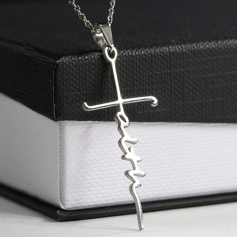 1pc New Stainless Steel Faith Word Church Prayer Religious Pendatn Necklace - silvery is backordered and will ship as soon as it is back in stock.