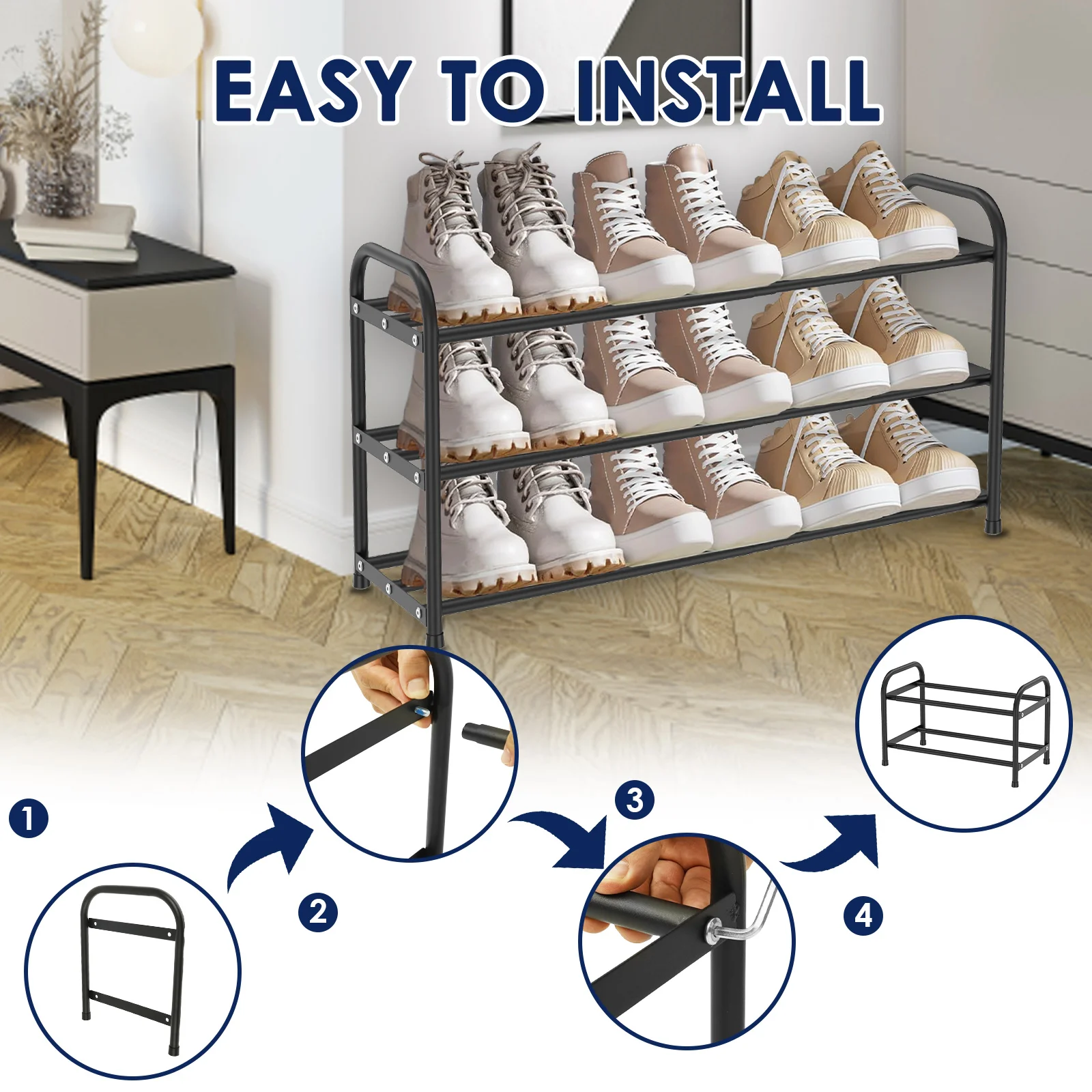 2/3 Tier Shoe Racks Stackable Expandable Shoe Rack Adjustable Metal Shoe Organizer for Entryway Hallway Front Door Entrance