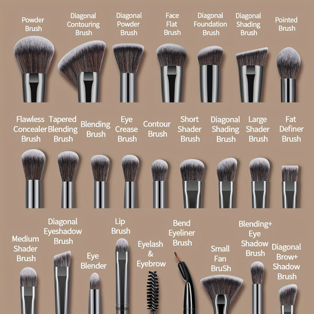 25pcs Professional Makeup Brush Set&7pcs Multi-Functional Beauty Blender&5pcs Dry Use Triangle Powder Puff, Blush Brush, Makeup Tools With Soft Fiber For Easy Carrying, Foundation Brush, Eye Shadow Brush, Eyebrow Brush, Brush