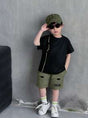 2pcs/Set Boy Casual Versatile Round Neck T-Shirt And Neon Green Cargo Shorts Set, Suitable For Spring/Summer, Daily Wear, Sports, Outings, School, Gatherings, Holidays, Performances, Photography