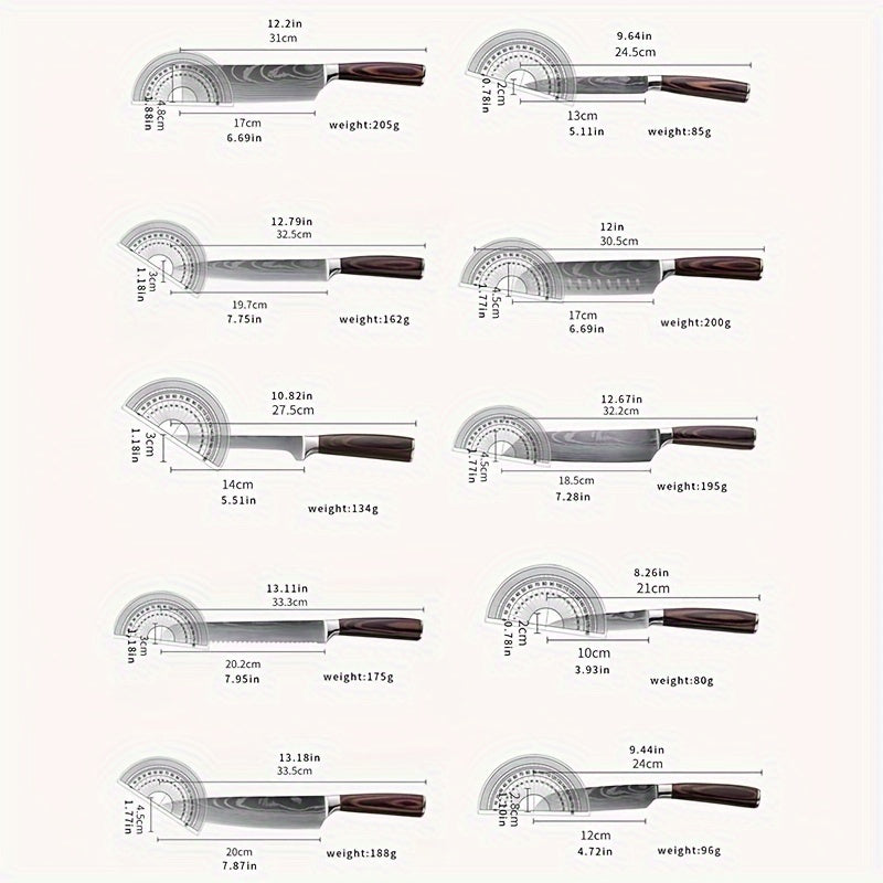 3-10pcs Stainless Steel Deluxe Kitchen Knife Set - Ergonomic Wooden Handle, Sharp Blade, Multi-Purpose, Portable for Home, Outdoor Camping, Dormitory, and More - Perfect for Chefs, Cooking Enthusiasts, and Foodies