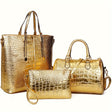3pcs/set Golden Luxury Top Handle Tote Bag, Crocodile Print Satchel Handbag, Women's Fashion Shoulder Bag, Crossbody Bag & Purse