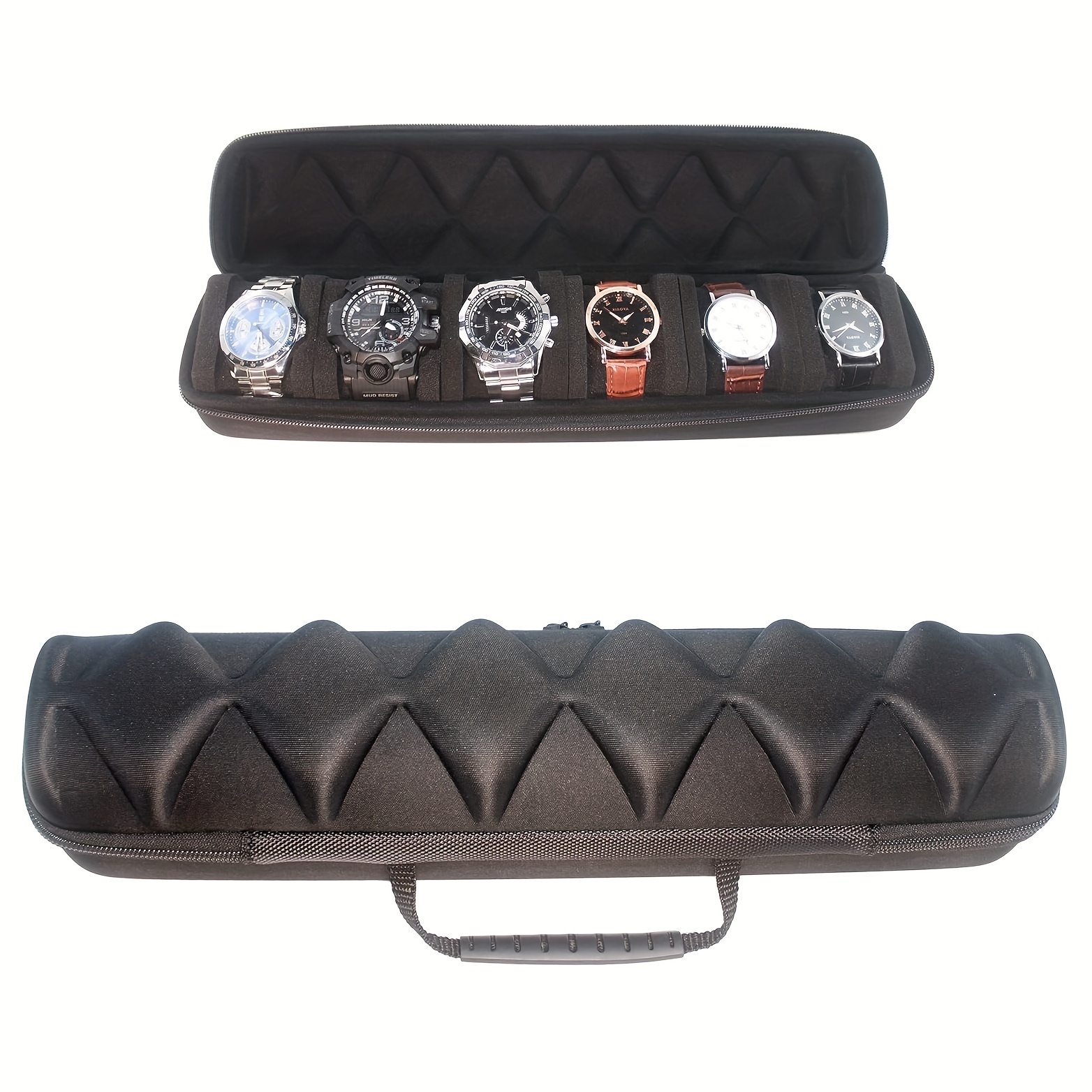 6-Watch Storage Case - Durable Hard-Shell Protection, Spacious Interior, Plush Soft Pillow - Portable Travel Case for Watches, Ideal for Home Storage and Organization - Black is backordered and will ship as soon as it is back in stock.