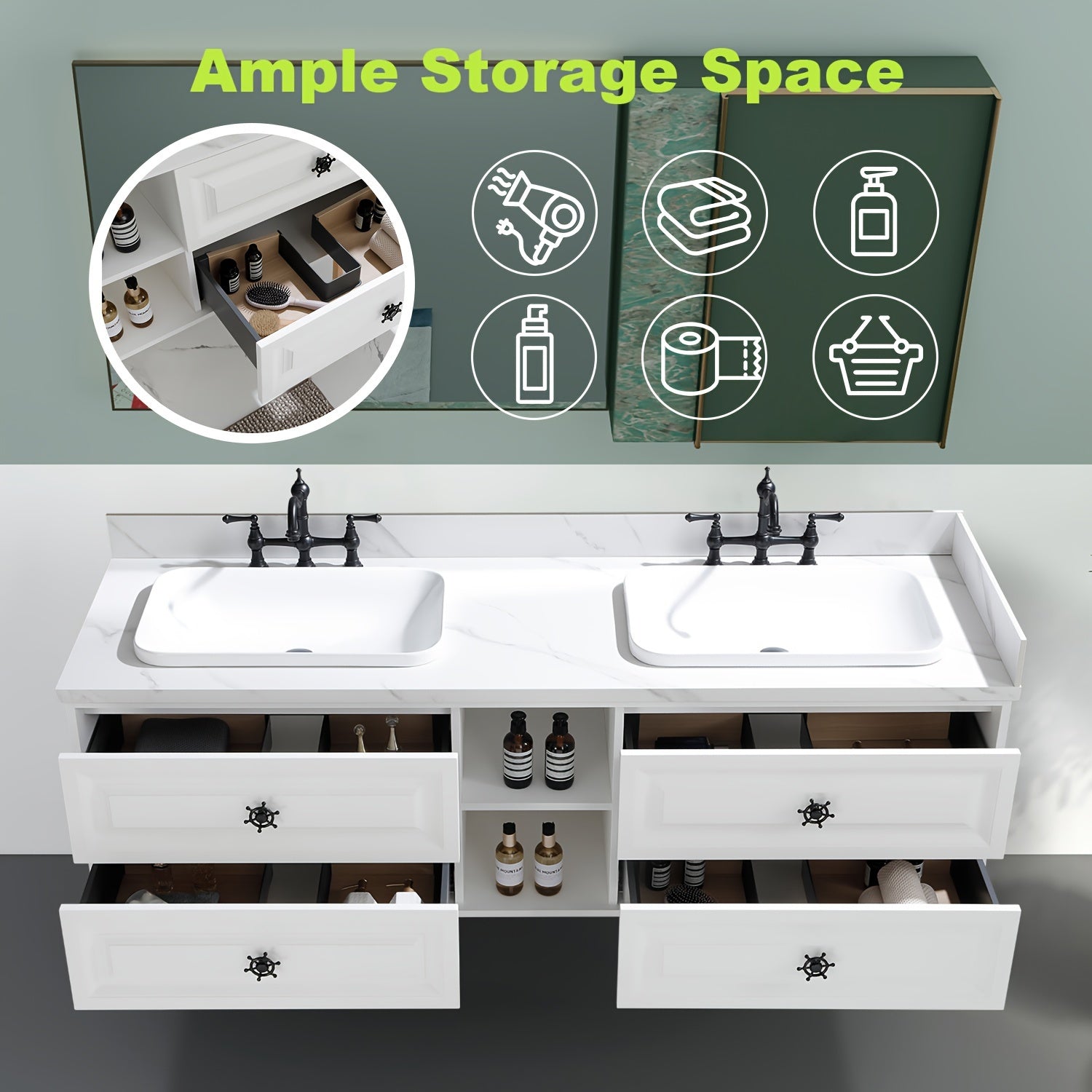 72×23×21inch Wall Hung Wood Frame Doulble Sink Bath Vanity Cabinet Only In Bathroom Vanities Without Tops With Roomy Storage Compartments For Holding Bathroom Essentials - White / 72×23×21 is backordered and will ship as soon as it is back in stock.
