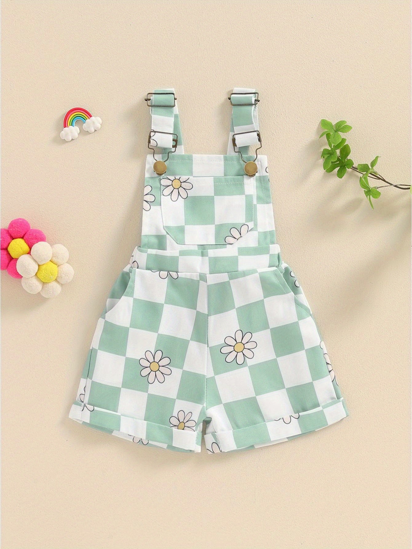 Adorable Toddler Baby Girl Summer Romper - Sleeveless Checkerboard Floral Print Jumpsuit with Pocket, Casual Overalls Shorts for Newborn, Cute Clothes for Little Princesses, Perfect for Outdoor Play and Special Occasions - Green / 12-18M is backordered and will ship as soon as it is back in stock.