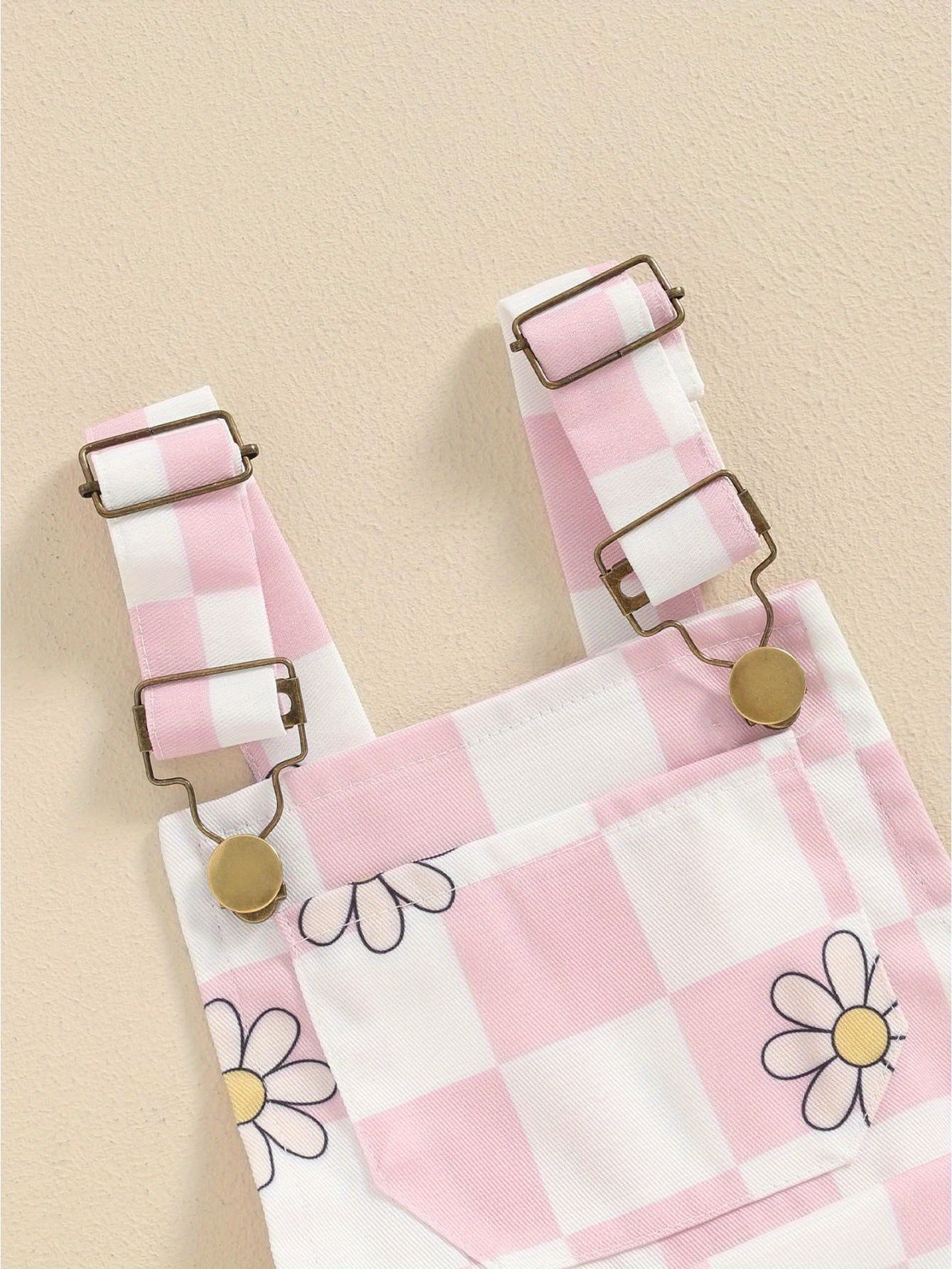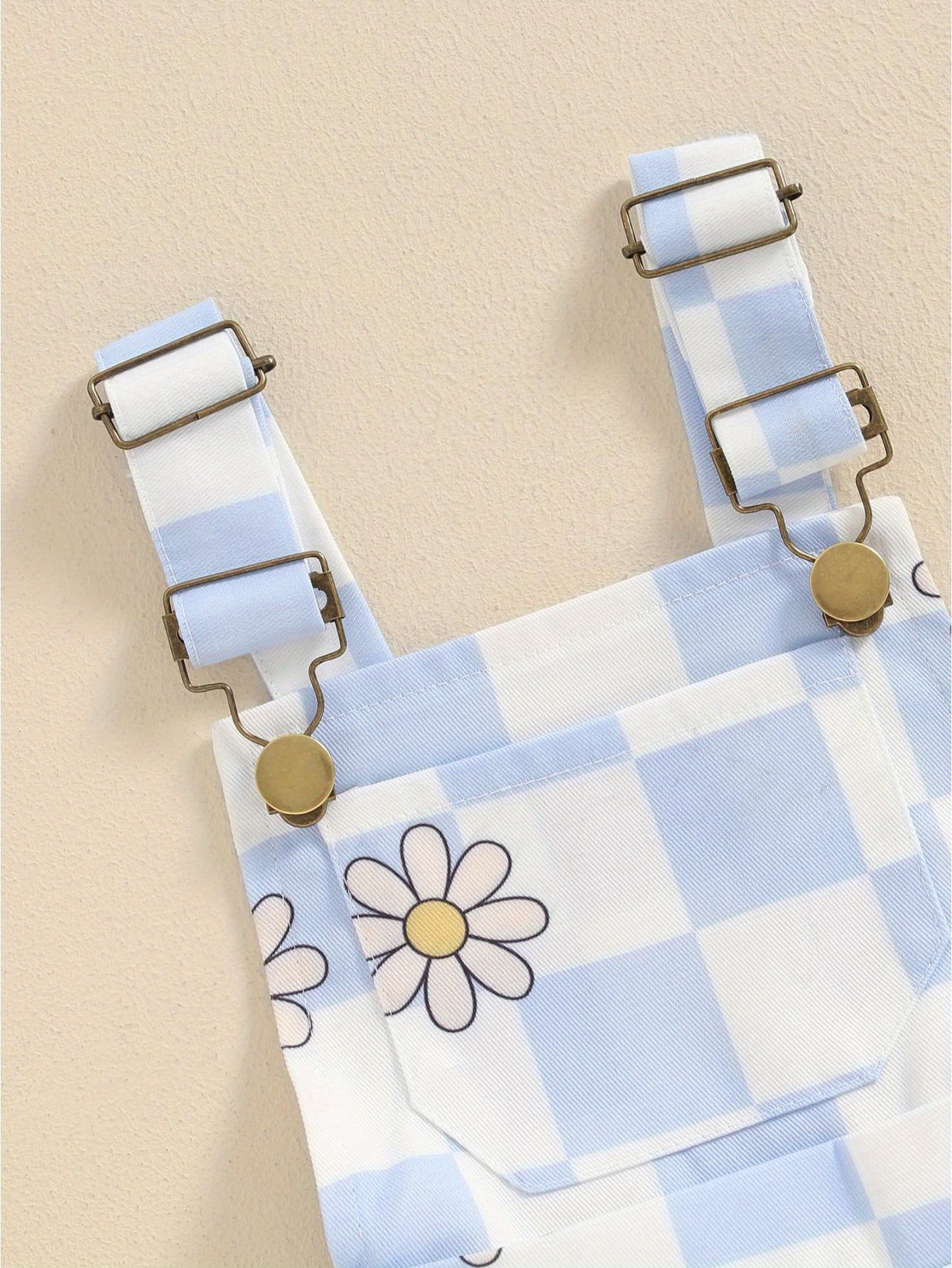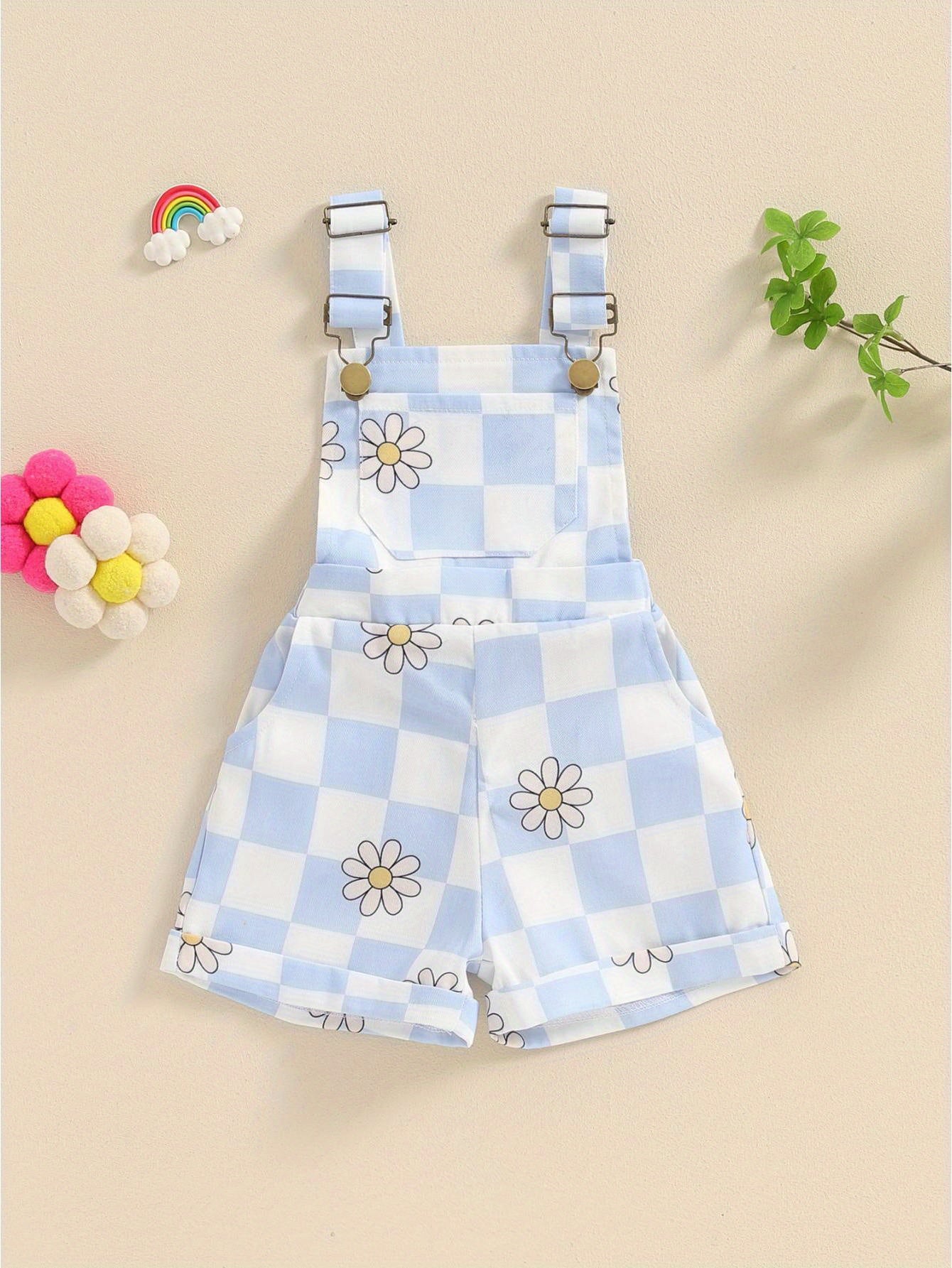 Adorable Toddler Baby Girl Summer Romper - Sleeveless Checkerboard Floral Print Jumpsuit with Pocket, Casual Overalls Shorts for Newborn, Cute Clothes for Little Princesses, Perfect for Outdoor Play and Special Occasions