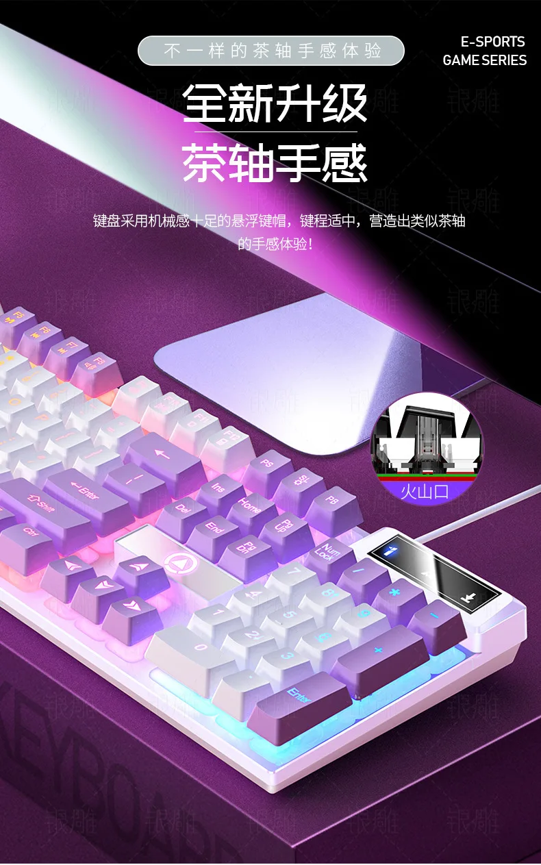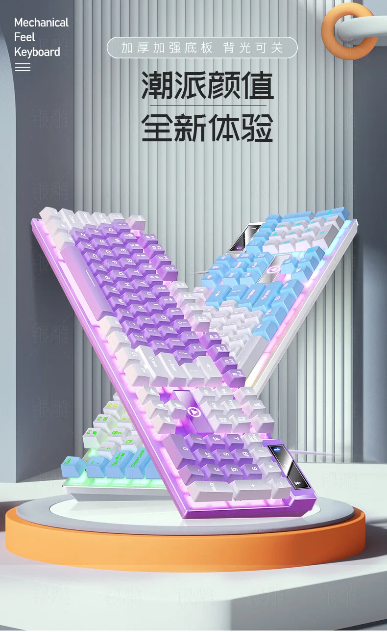 Advanced K500 gaming wired keyboard with color blocking and luminous mechanical feel, desktop computer keyboard