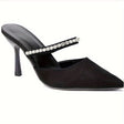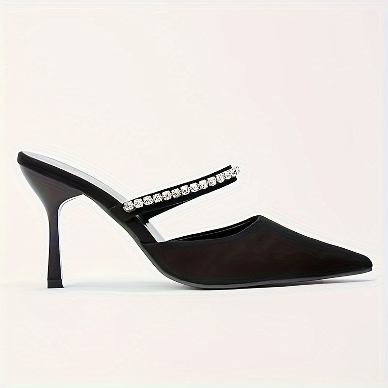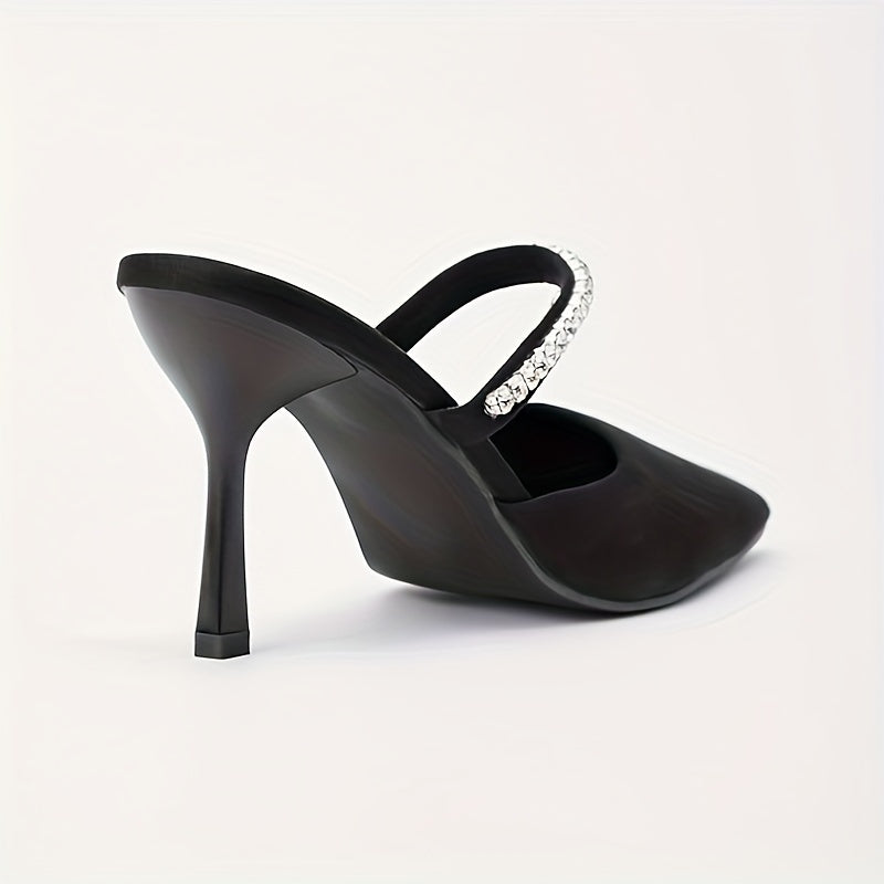Sparkly Ankle Strap Heels: Our Mule Heels feature a stunning ankle strap adorned with sparkling diamonds. These diamond embellishments add glamour and sophistication, making these shoes a true statement piece.