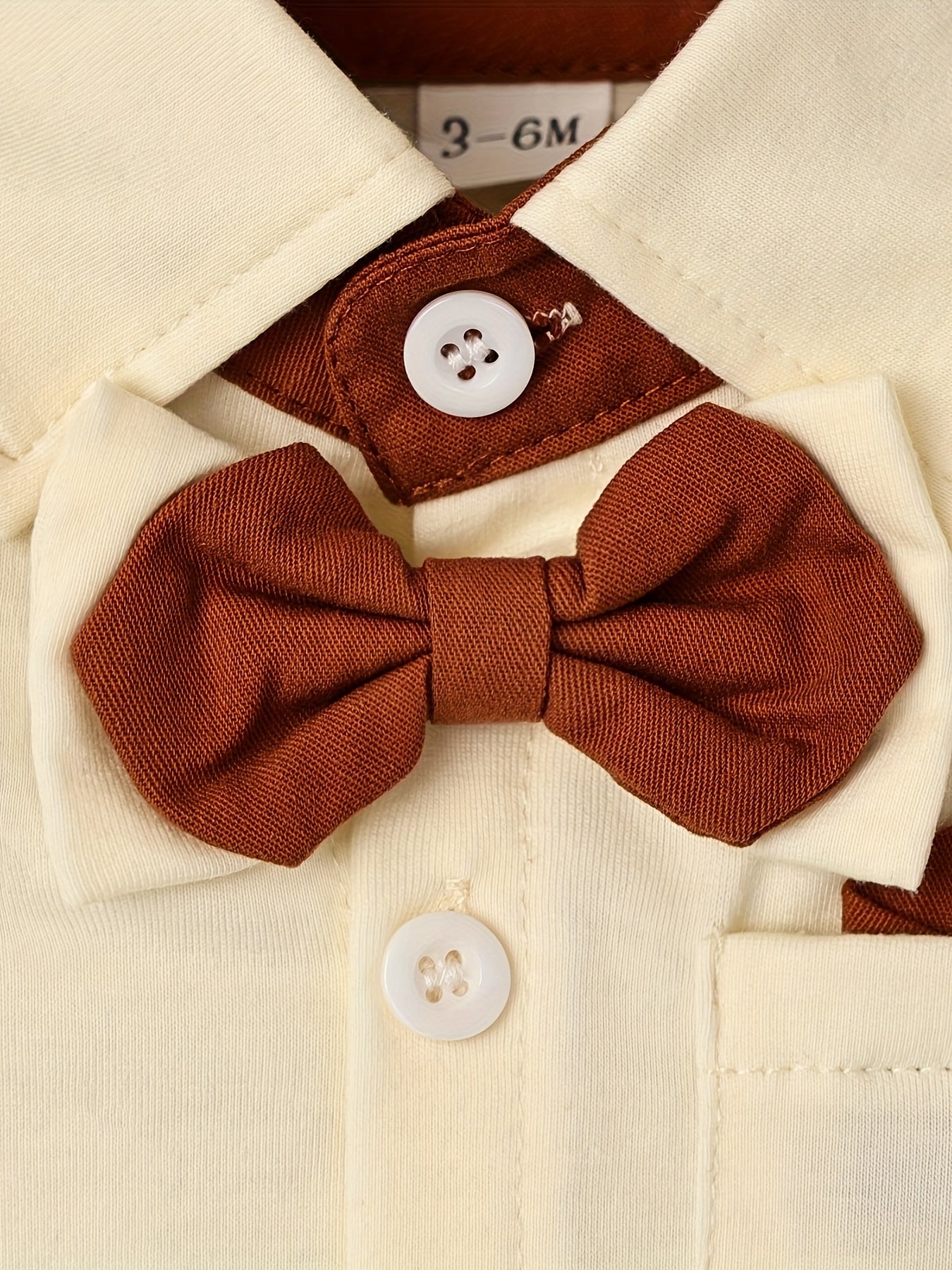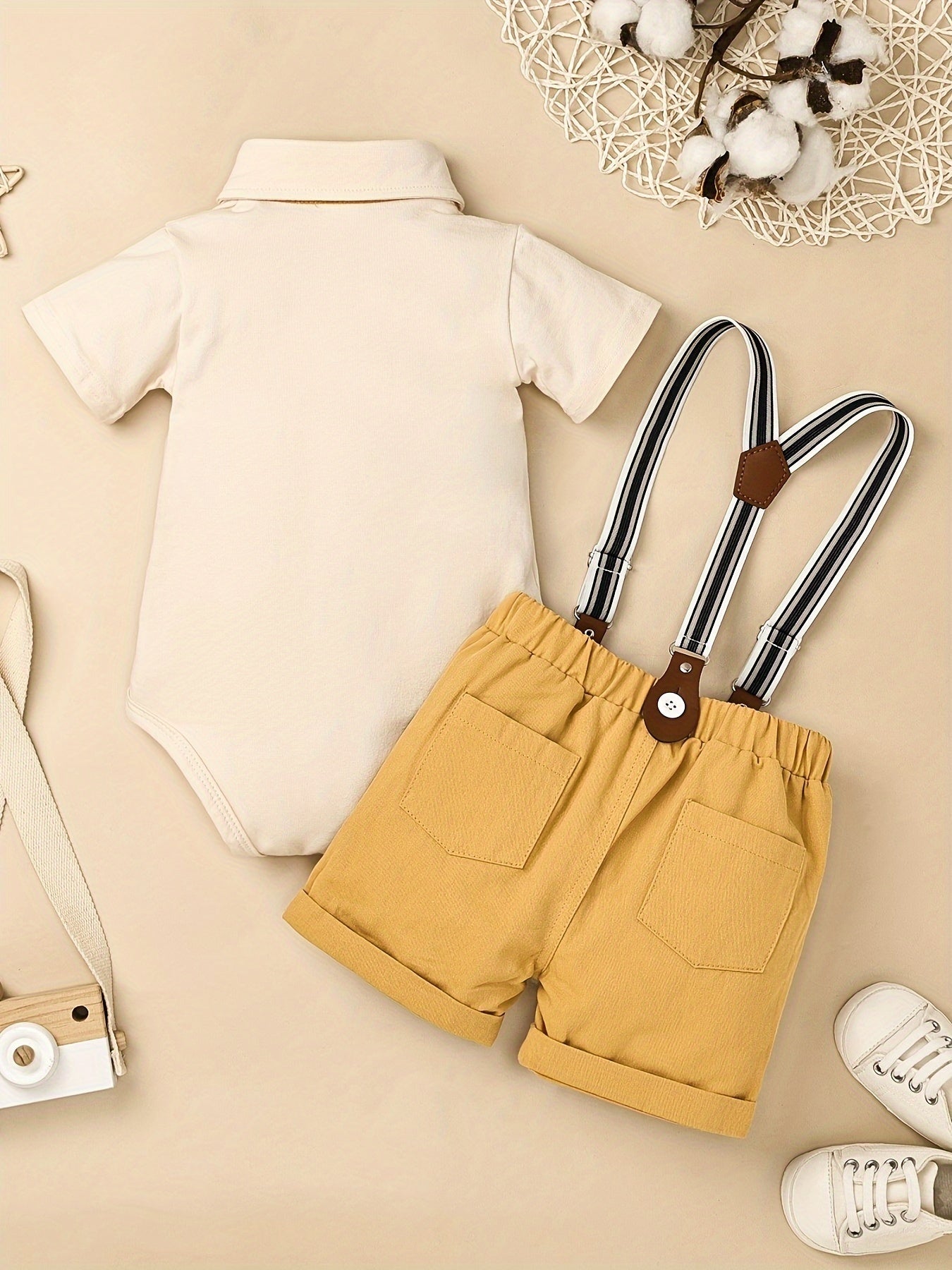 Baby Boy Clothes Infant Little Gentleman Romper + Strap Pants + Bowtie 3pcs Outfits 0-18 Months - Yellow / 0-3M is backordered and will ship as soon as it is back in stock.