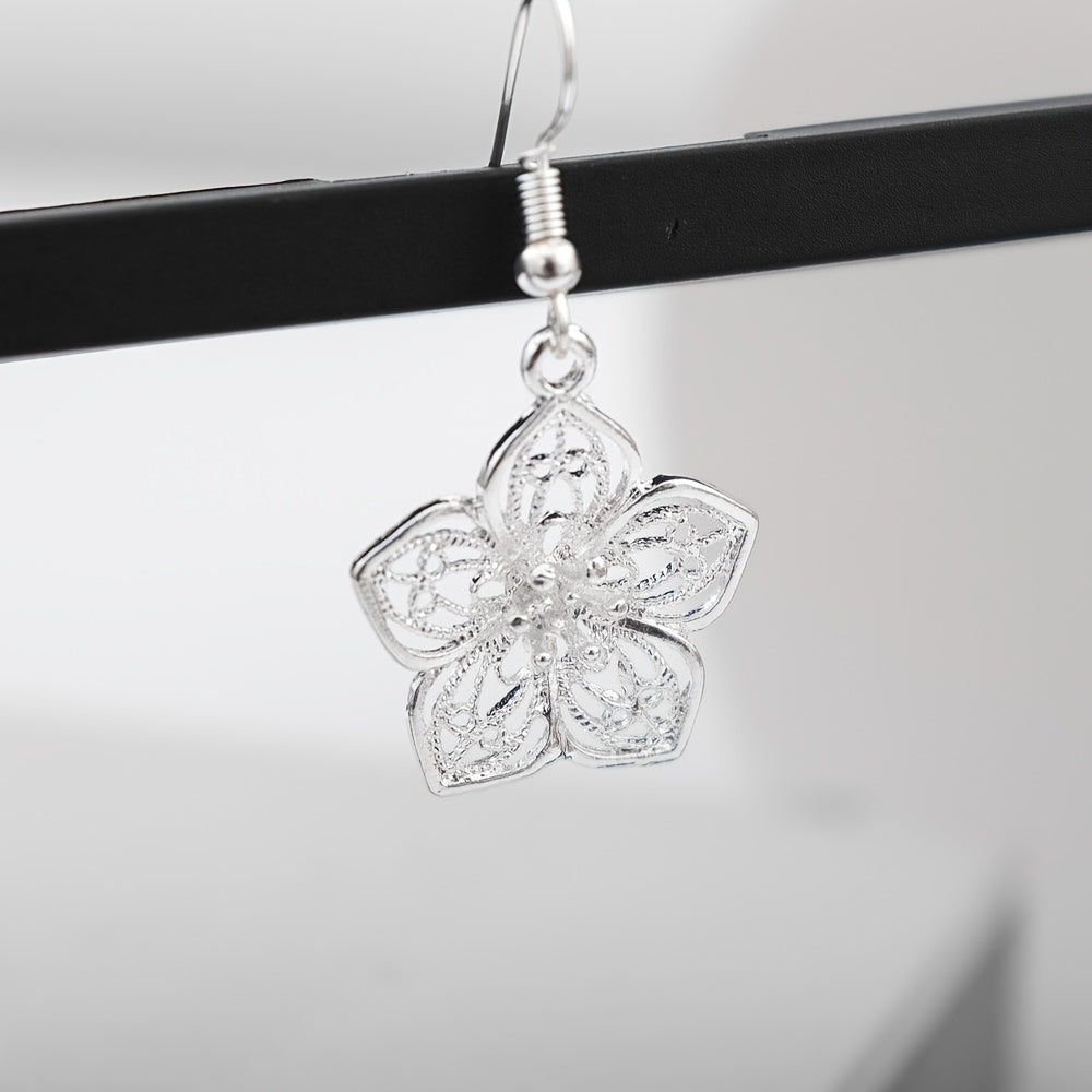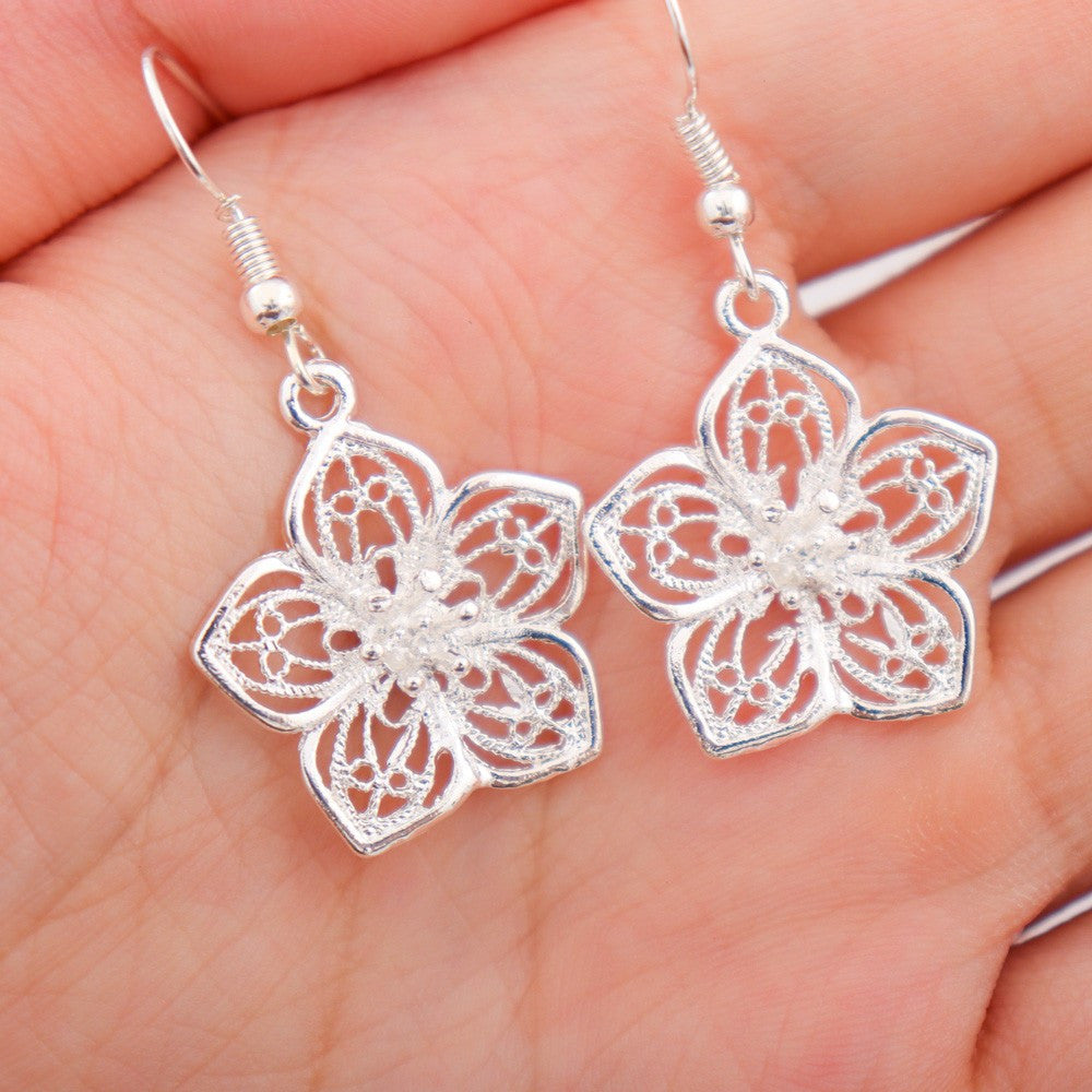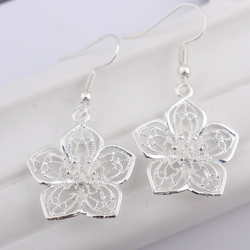 Boho Hollow Flower Shape Earrings Vintage Silver Plated Jewelry For Women