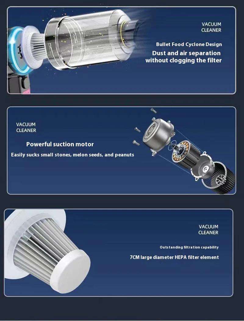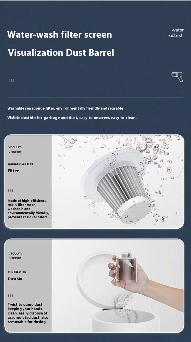 3. USB Charging :The vacuum cleaner can be charged via USB, making it easy to charge anywhere and anytime.