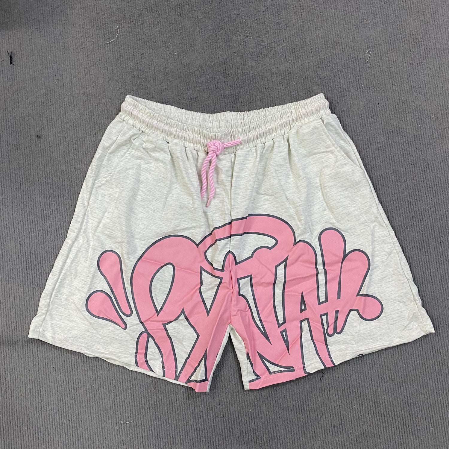 Casual Retro Hip Hop Print Drawstring Shorts for Men & Women - Y2K-Inspired Cotton Blend, Machine Washable, Streetwear Fashion - grey / Asian S(0) is backordered and will ship as soon as it is back in stock.