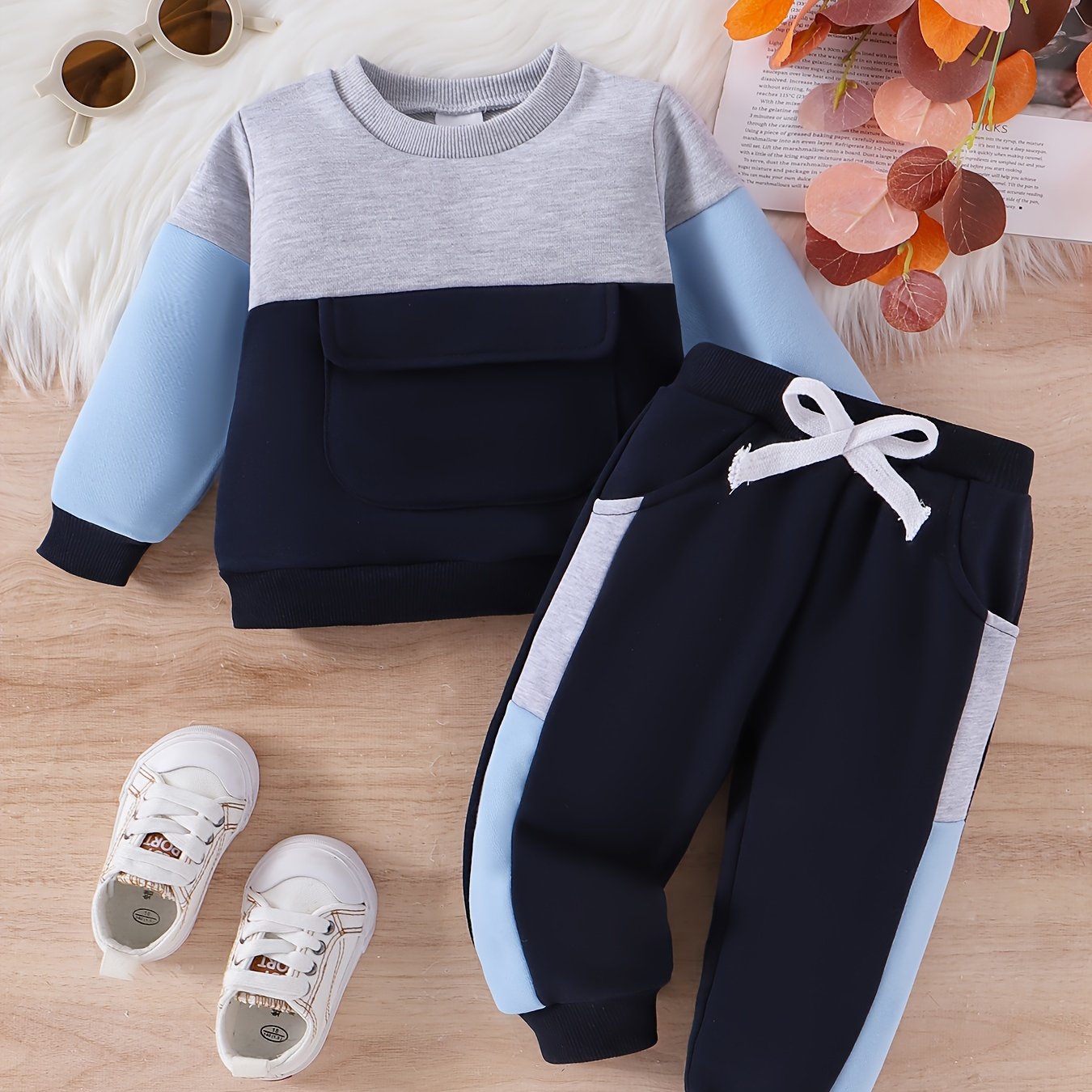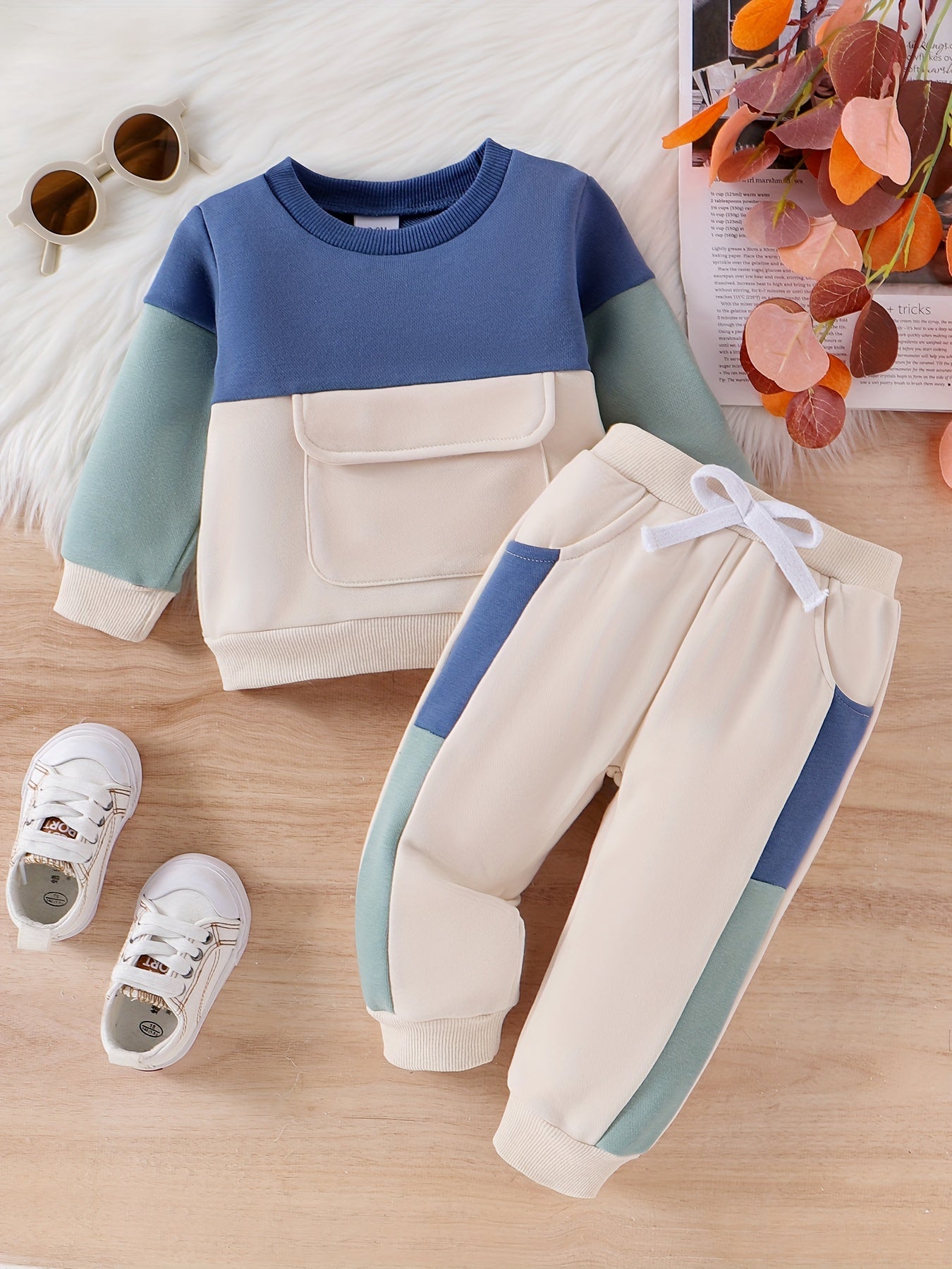 CETEPY Toddler Baby Boys Clothes Autumn Winter Outfits Color Block Long-sleeved Top + Trousers WIth Pockets Sets 6 Months-3 Years, for Outdoor