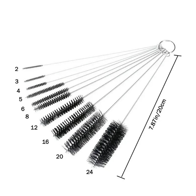 10Pcs Set Stainless Soft Hair Suction Glass Tube Cleaner Brushes Nylon Bottle Fish Tank Pipe Brush Household cleaning tools