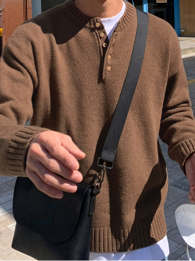 Cozy Crew Neck Sweater for Men - Soft, Lightweight, and Breathable 100% Polyester Solid Color Loose Fit Knit Pullover with Medium Stretch, Perfect for Fall and Winter Seasons