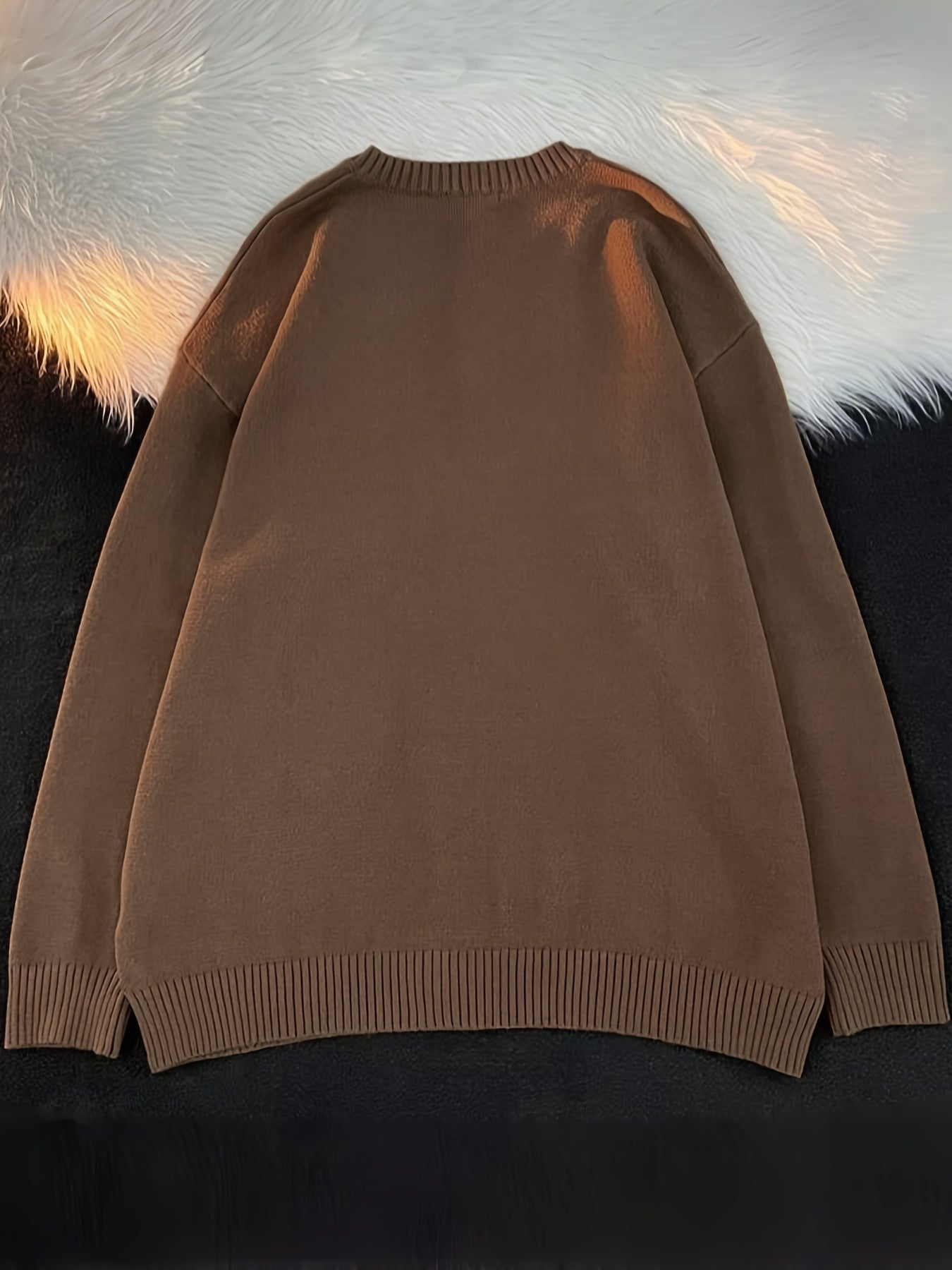 Cozy Crew Neck Sweater for Men - Soft, Lightweight, and Breathable 100% Polyester Solid Color Loose Fit Knit Pullover with Medium Stretch, Perfect for Fall and Winter Seasons - Dark Brown / S is backordered and will ship as soon as it is back in stock.