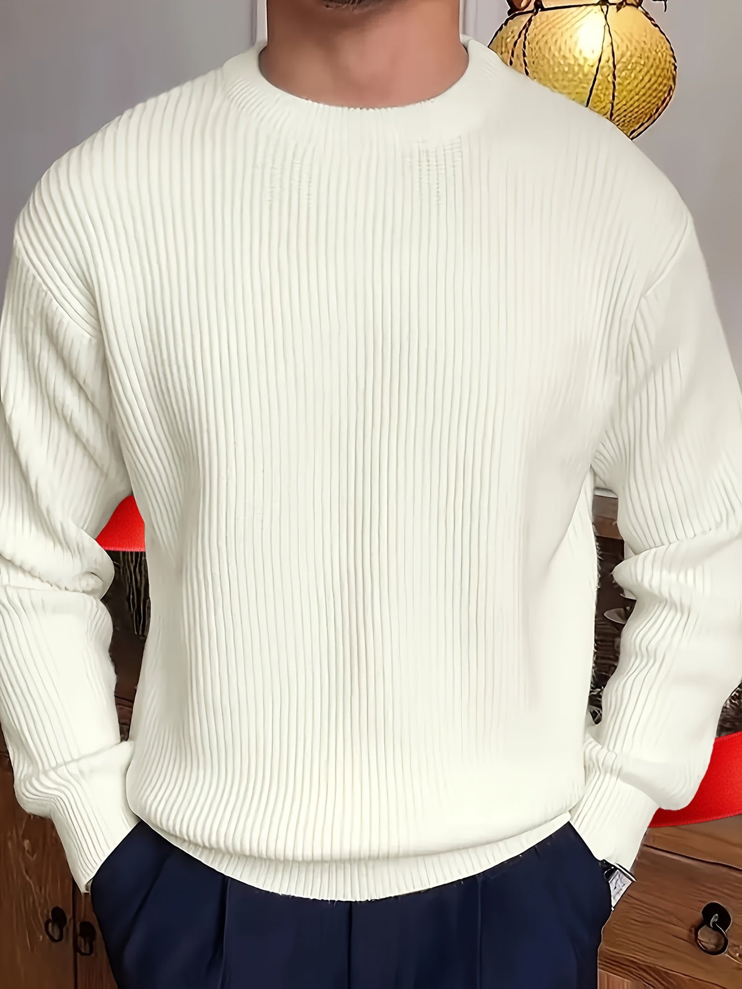 Cozy Solid Color Crew Neck Sweater for Men - Long Sleeve Pullover Tops for Spring and Fall - Soft, Breathable, and Versatile Casual Wear - White / S is backordered and will ship as soon as it is back in stock.