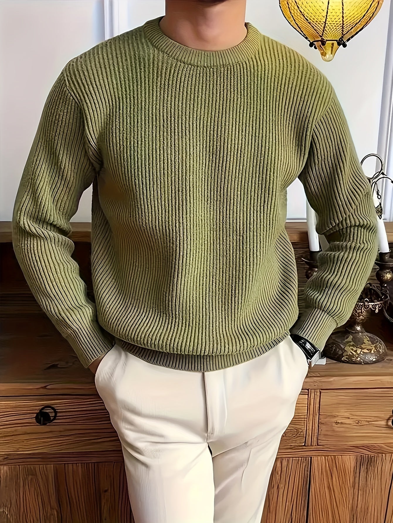 Cozy Solid Color Crew Neck Sweater for Men - Long Sleeve Pullover Tops for Spring and Fall - Soft, Breathable, and Versatile Casual Wear