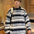 Cozy Striped Knit Sweater for Men - Casual Loose Fit, Color Block Design, Perfect for Fall/Winter
