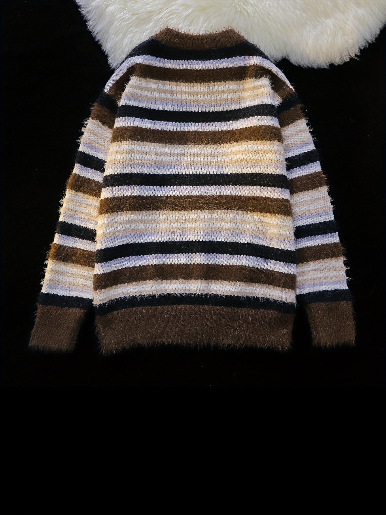 Cozy Striped Knit Sweater for Men - Casual Loose Fit, Color Block Design, Perfect for Fall/Winter - Black / US XS is backordered and will ship as soon as it is back in stock.