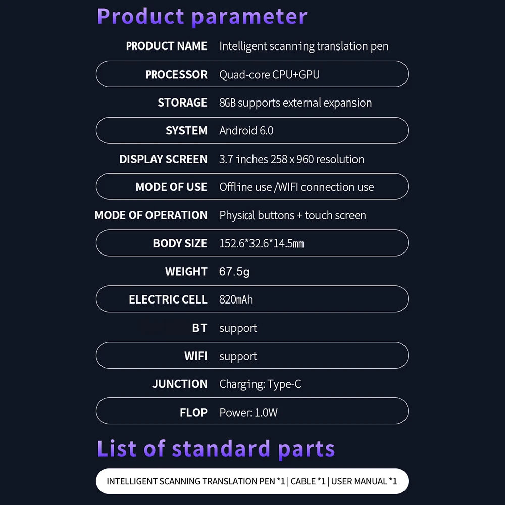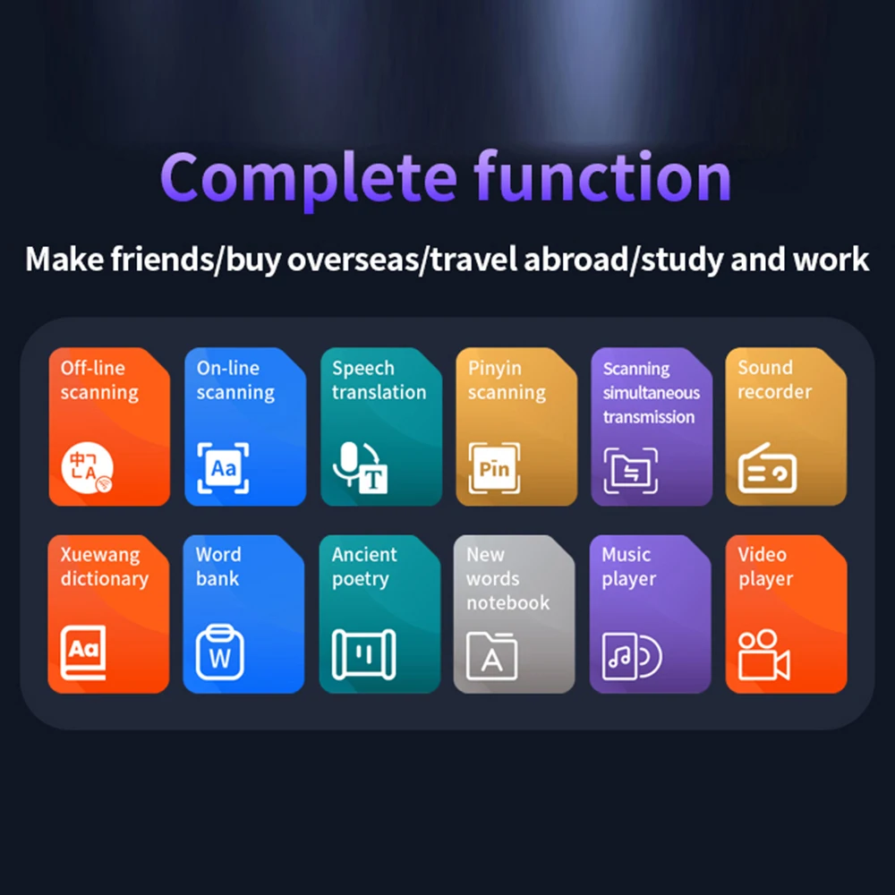☞ Ideal Learning Tool: With its extensive collection of English and Chinese words, as well as ancient poems, the Translation Pen Scanner serves as an ideal learning tool. It supports audio recording, MP3 playback, and video playback, allowing users to enhance their language learning experience through immersive multimedia features.