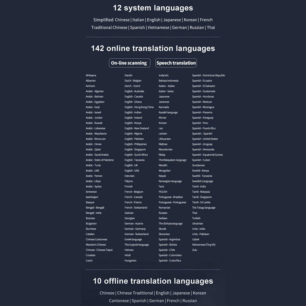 ☞ Multilingual Translation Capabilities: Equipped with 142 online scanning and 142 online voice translation options, the Translation Pen Scanner meets the diverse language translation needs. It also supports pinyin scanning for accurate translations in different languages. Additionally, it offers 10 offline scanning functions, allowing text translation without requiring an internet connection.