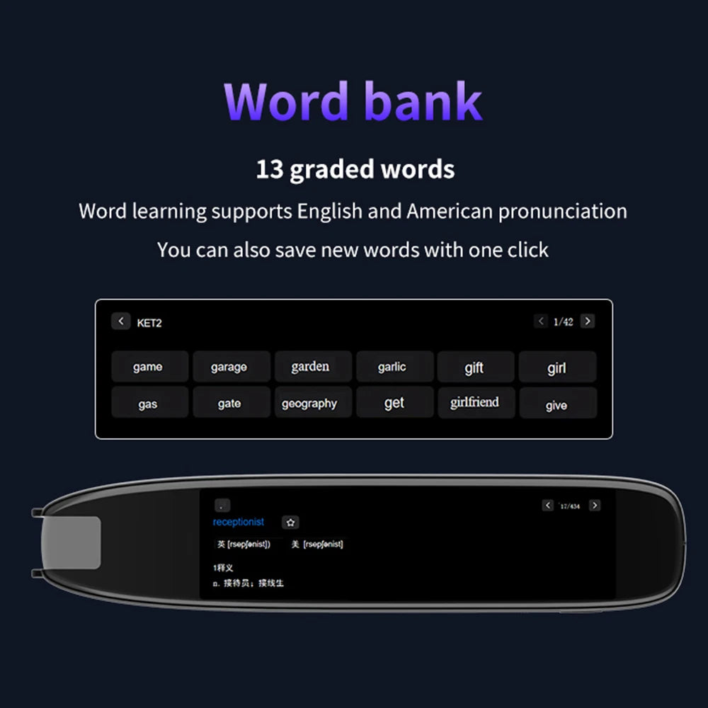 ☞ High-definition Touchscreen: The Scan Reader Pen features a 3.7" high-definition touch screen, providing a clear display effect and an intuitive operation experience. With its advanced technology, users can easily navigate through various functions.