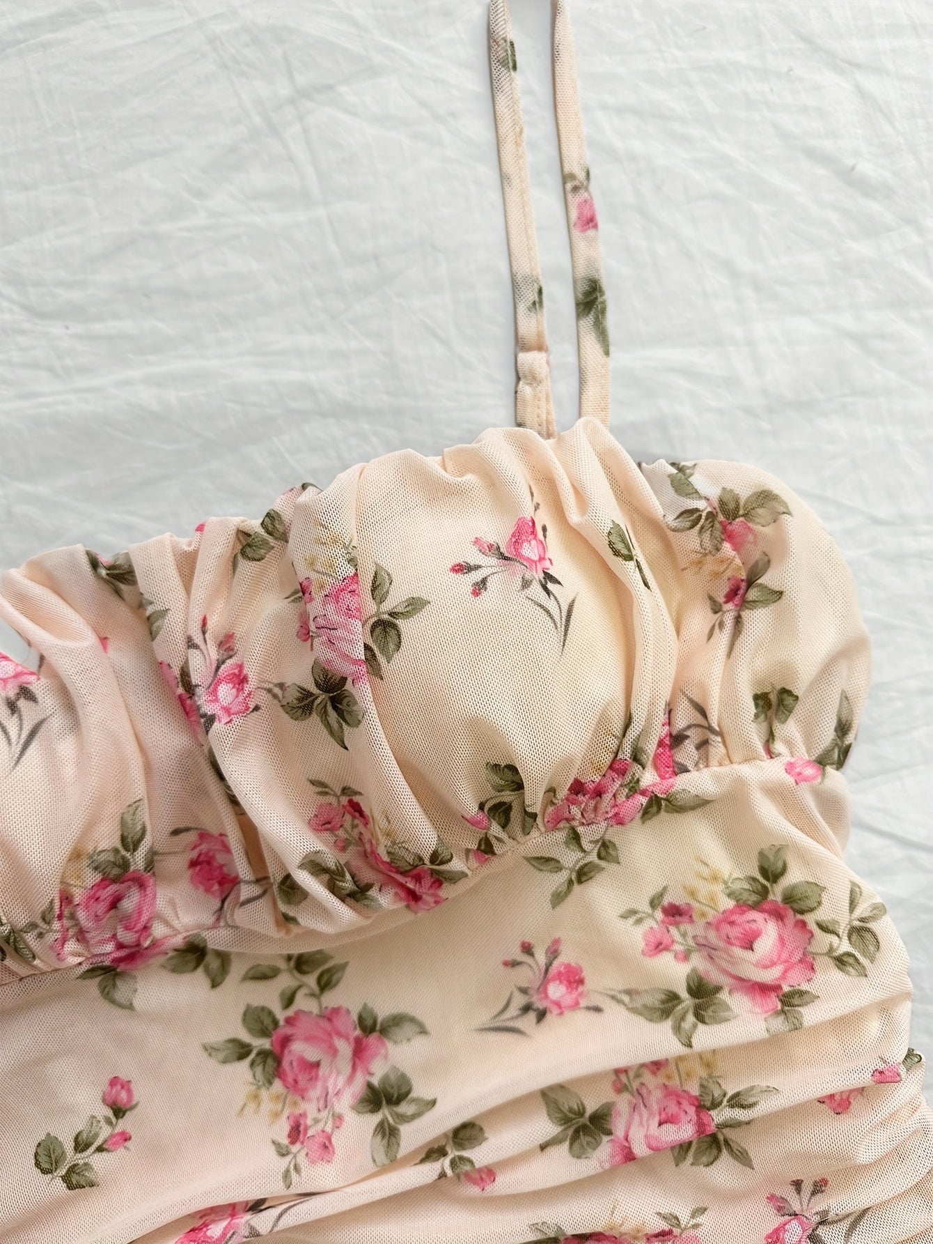 Elegant Floral Ruched A-Line Mini Dress for Women - Lightweight Summer Breeze, Perfect for Parties, Dates, Valentine'S Day, Easter, Mardi Gras, Beach Outings, Cruise, and Afternoon Tea, Elegant Outfit, Dress