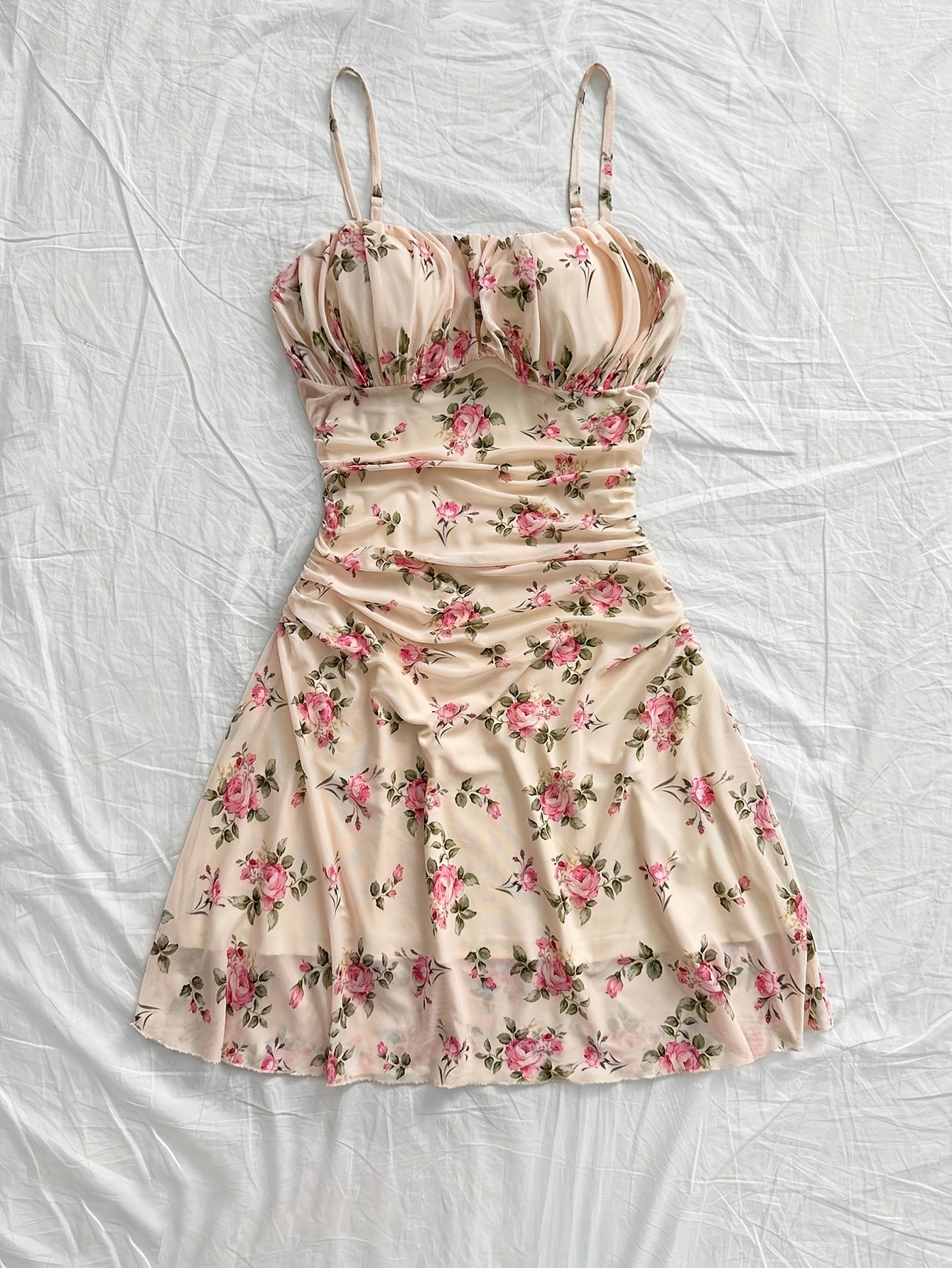 Elegant Floral Ruched A-Line Mini Dress for Women - Lightweight Summer Breeze, Perfect for Parties, Dates, Valentine'S Day, Easter, Mardi Gras, Beach Outings, Cruise, and Afternoon Tea, Elegant Outfit, Dress - Pink floral dress / S is backordered and will ship as soon as it is back in stock.