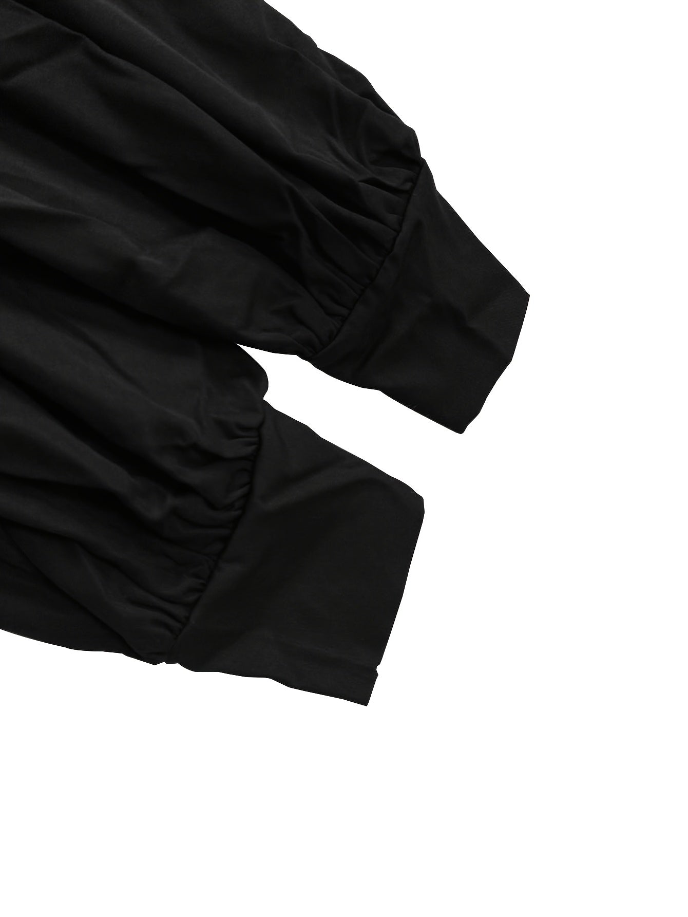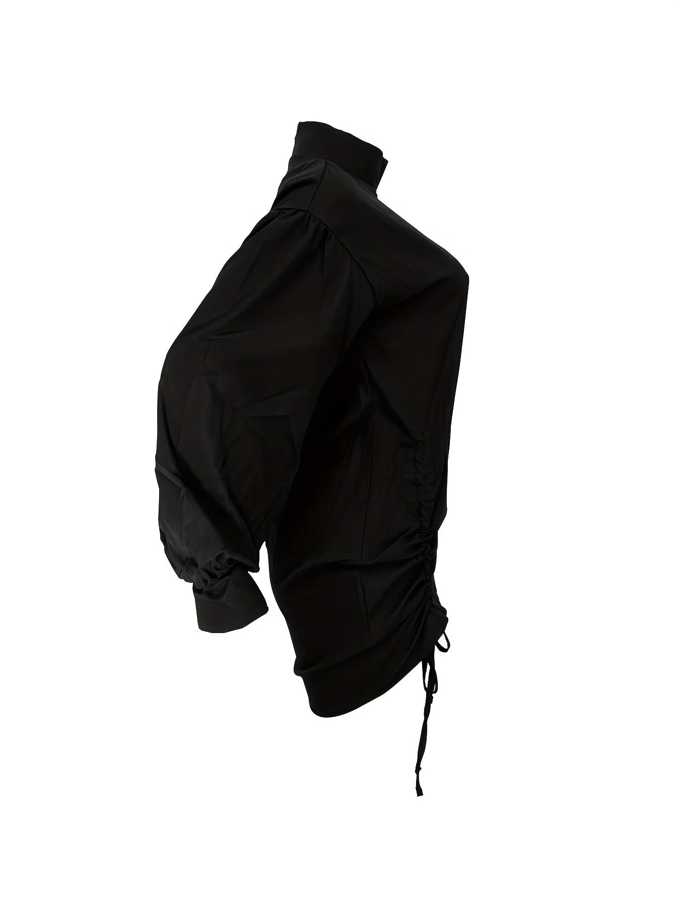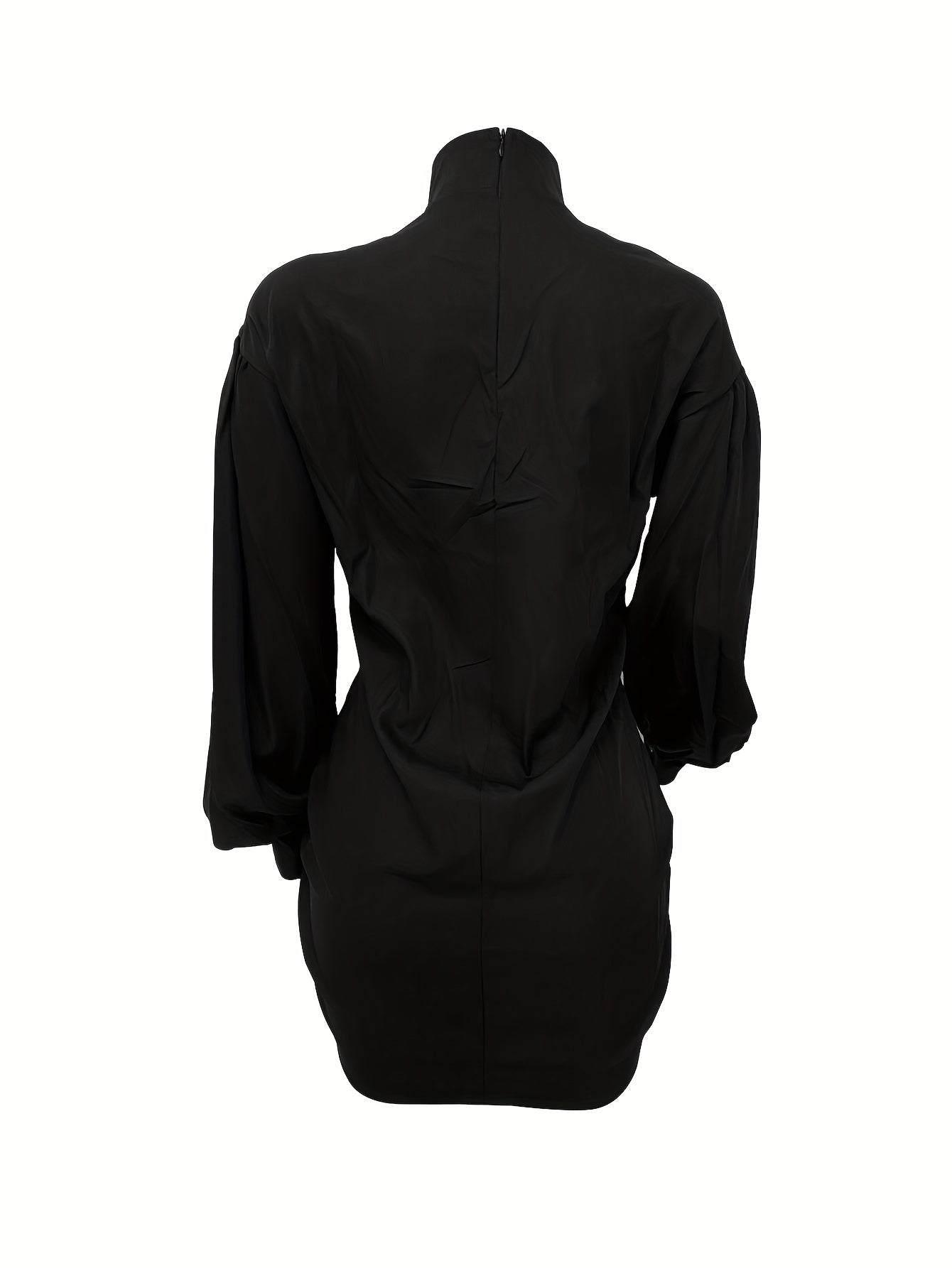 Elegant Polyester Bodycon Dress for Women - Spring/Summer Crew Neck Solid Color with Lantern Sleeves and Drawstring Detail - Black / S is backordered and will ship as soon as it is back in stock.