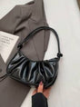 Fashionable Glossy PU Leather Women Crescent Shaped Bag, Minimalist Solid Color Pleated Shoulder Bag