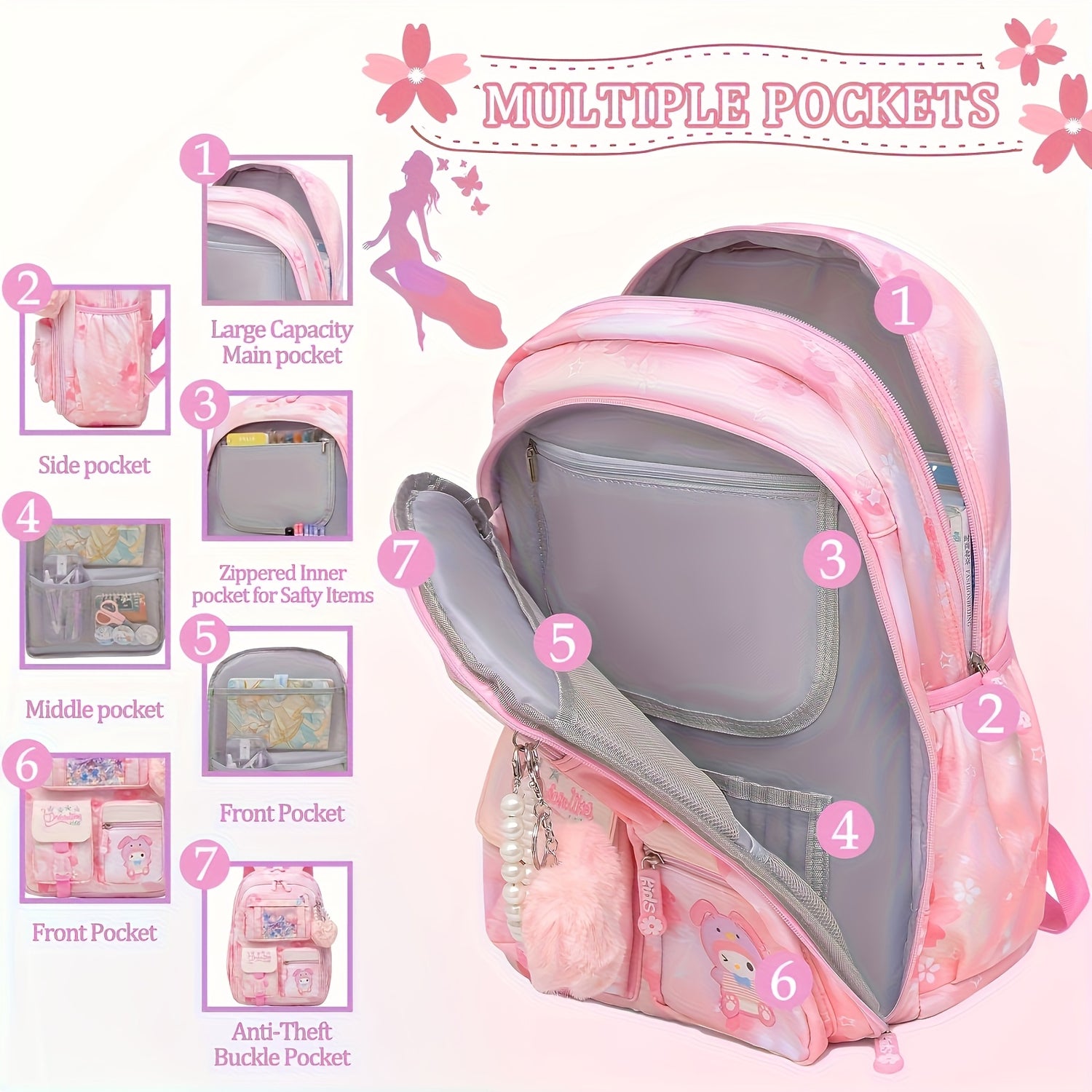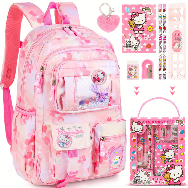Girls' Hello Kitty Backpack/Duffel Bag - Pastel Pink School Bag with Zipper Closure, Large Capacity Travel luggage, Adjustable Shoulder Straps - Lightweight daypack for Girls, Birthday/Christmas/Holiday Gift for Anime Fans, O
