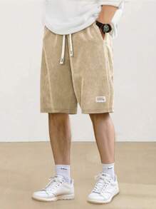Hidkat Men's Summer Cotton Corduroy Short Sports Pants, Fashion Elastic Waist With Back Pocket, Casual Beach Shorts