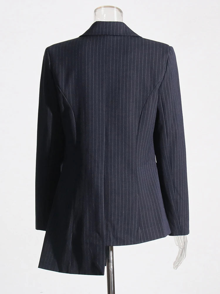 Hit Color Irregular Hem Casual Blazer For Women Notched Long Sleeve Patchwork Button Temperament Blazers Female Fashion New - navy blue / S is backordered and will ship as soon as it is back in stock.