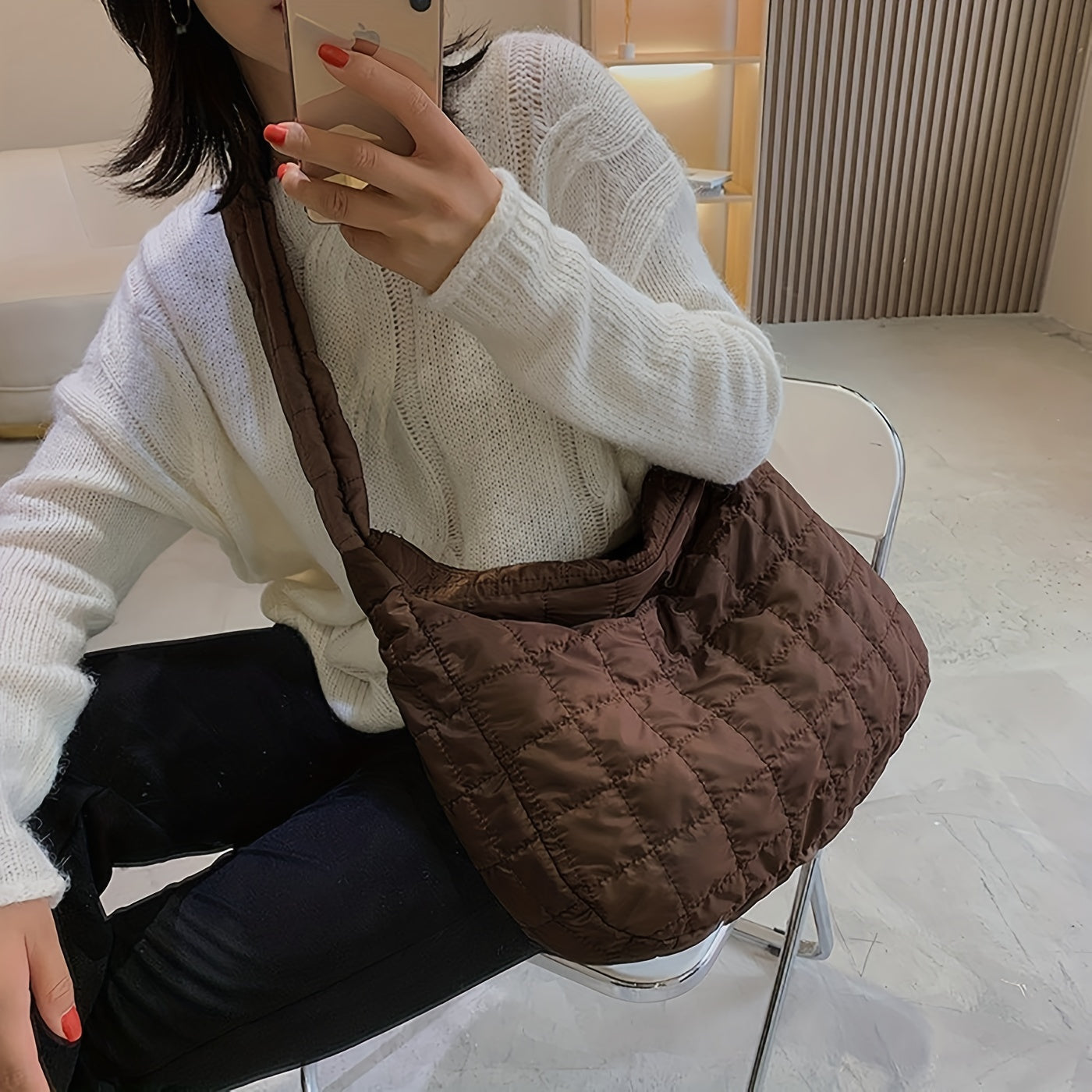 Large Capacity Quilted Tote Bag, Fashion Padded Shoulder Bag, Women's Cute Handbag, Crossbody Bag & Hobo Purse