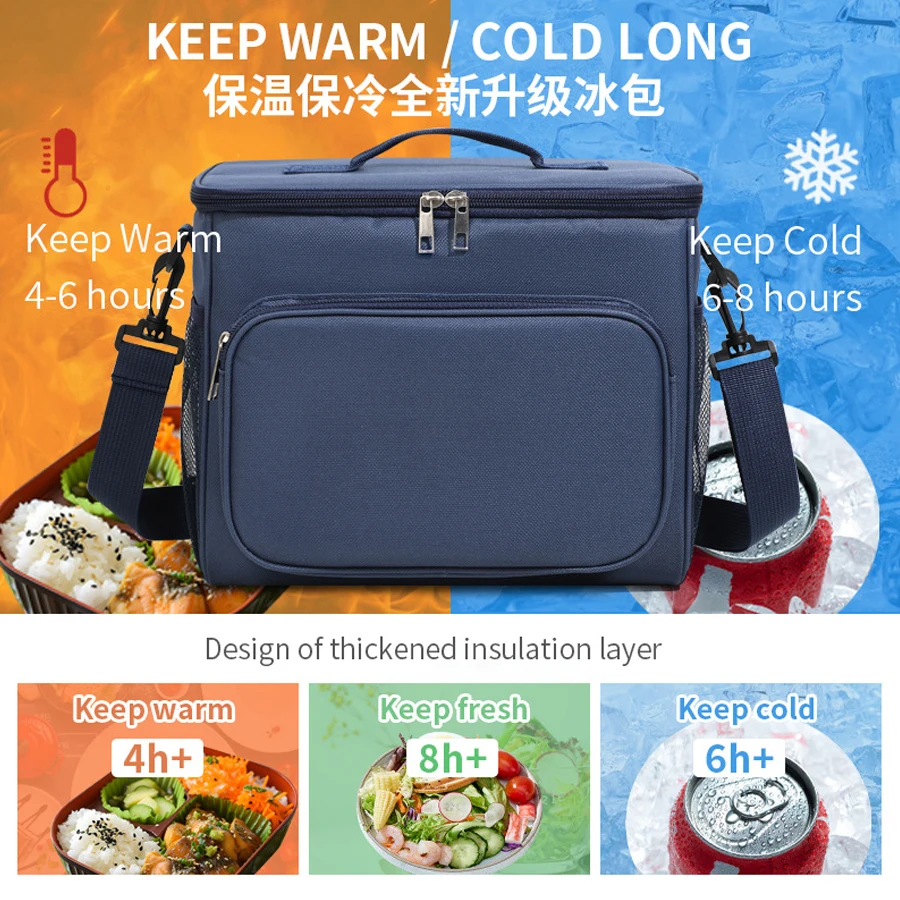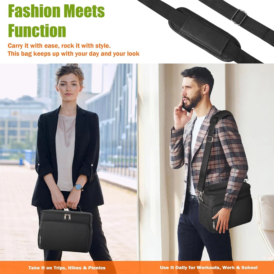 Lunch Bag Adjustable Shoulder Strap Box Upgraded Leakproof Collapsible Large Work Capacity Thick Insulation Camping Outdoor