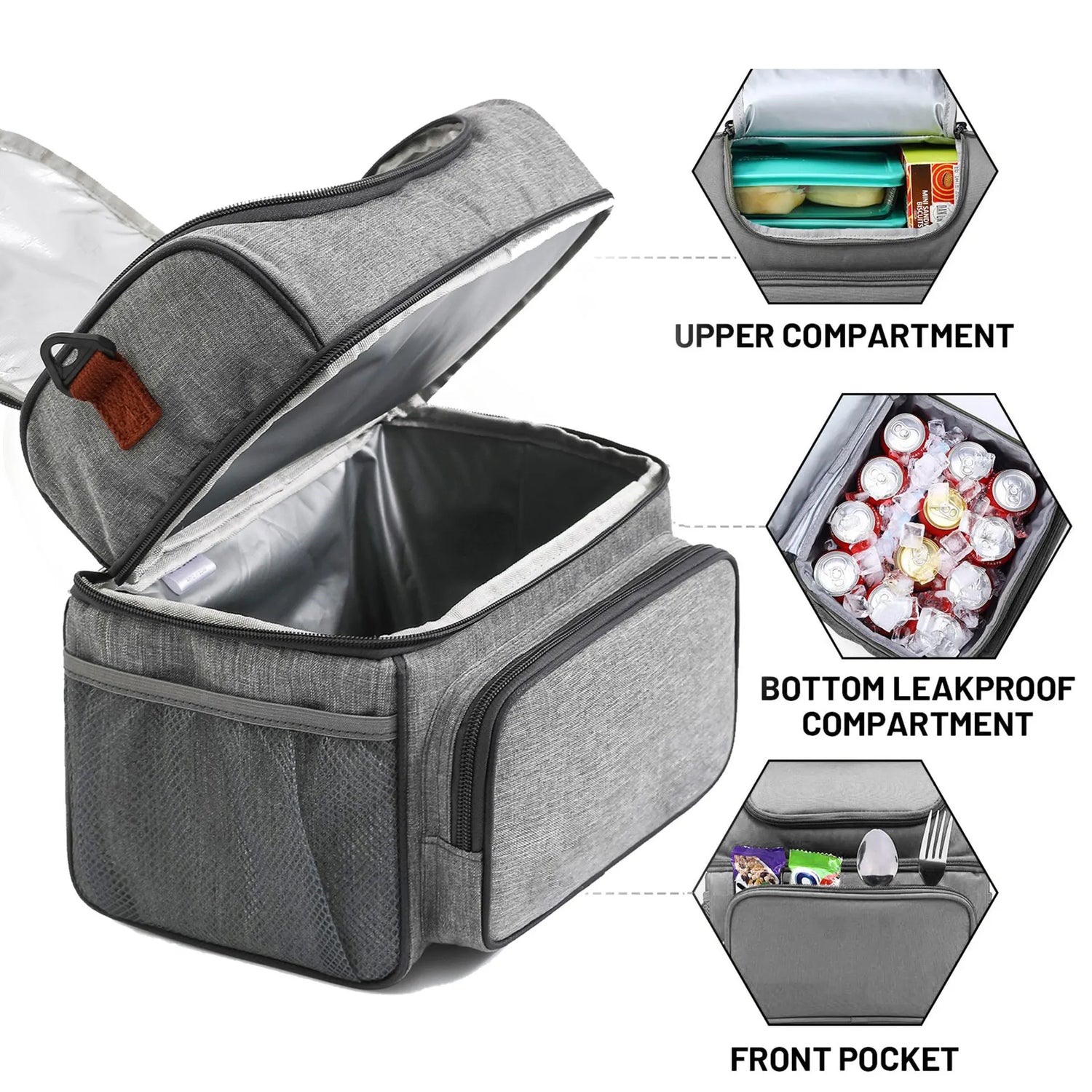 【Double Decker Lunch Bag for Men】Mens lunch box bag features with two insulated sections allowing you to pack hot and cold food separately. Top dry compartment is for fruits, chips and other snacks. Bottom leakproof compartment is for lunch boxes, bento boxes, sandwiches, food containers, drinks and so on. Keep your food organized
