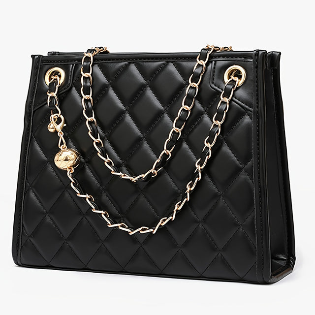Luxury Quilted Faux Leather Tote Bag For Women With Adjustable Chain Strap, Classic Crossbody Handbag For Daily Outfits