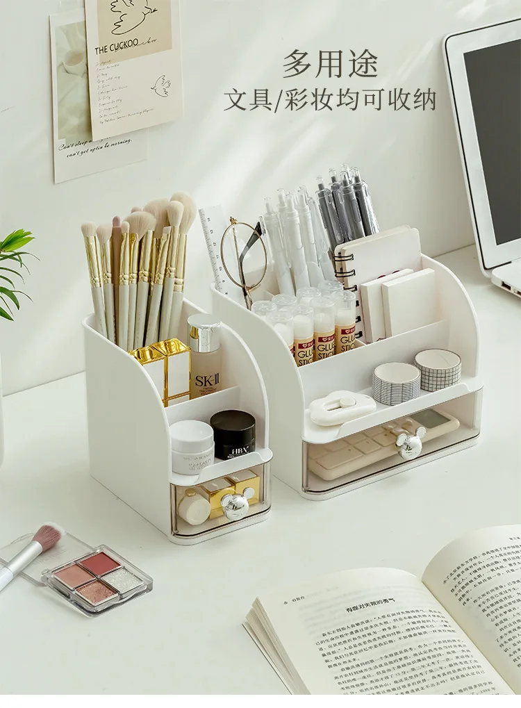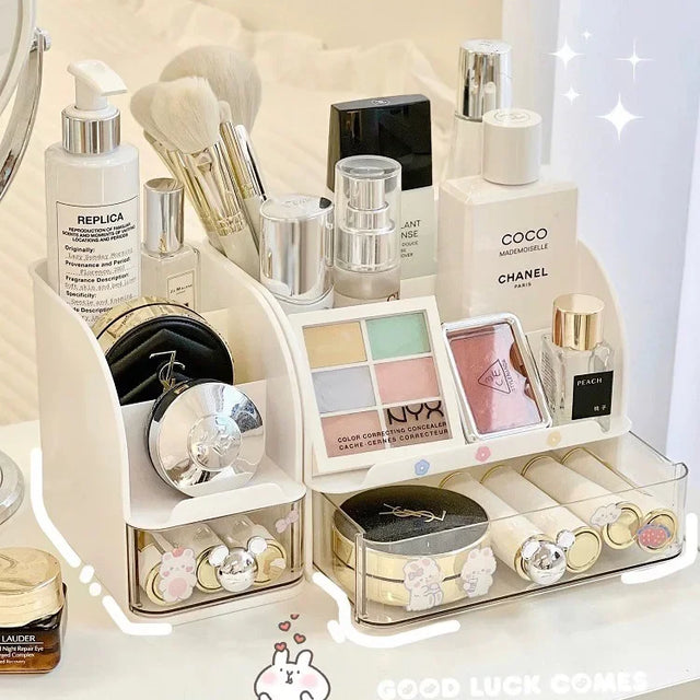 Makeup Organizer with Drawer, Cosmetic Desk Storage Box, Skincare Organizers for Dressing Table, Bathroom Counter Vanity Holder