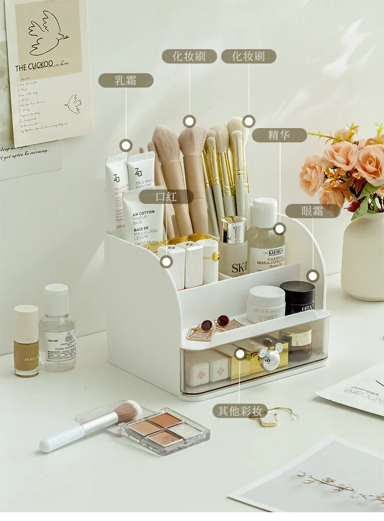 LARGE CAPACITY CLASSIFIED STORAGE - The design of multiple compartments and drawers makes it a perfect cosmetic storage box for storing lotion, essence, facial cleanser, lipsticks, eye shadows, makeup brushes and other skin care products, cosmetics, and toiletries.